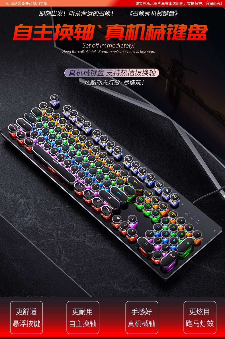 실버 조각 소환사 실제 기계 키보드 변경 축 게임 녹색 축 전자 스포츠 펑크 케이블 USB 아마존 도매