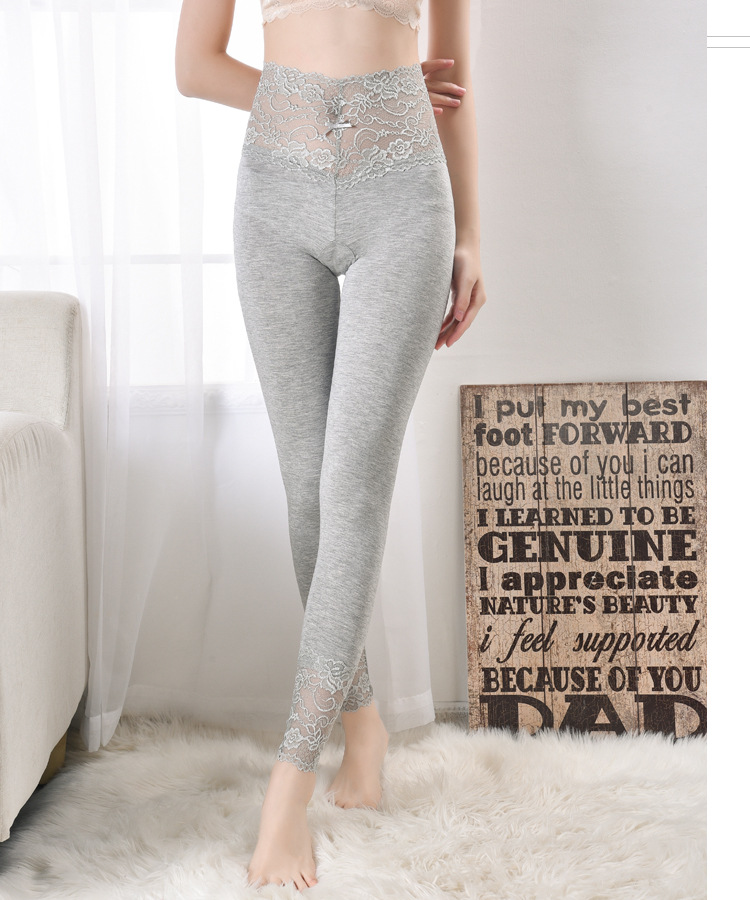 여성용 모달 가을 바지 싱글 피스 섹시 레이스 슬림핏 레깅스 가을과 겨울 여성용 얇은 탄성 따뜻한 바지