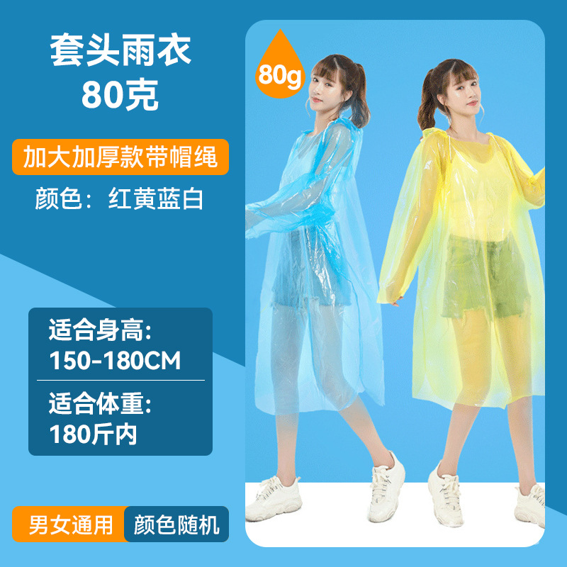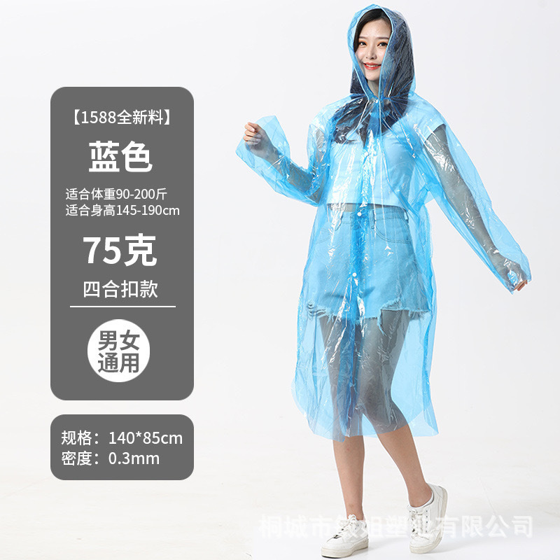 • 신소재 PE 풀오버 레인코트, 조임끈 포함 80g (투명색/블루)