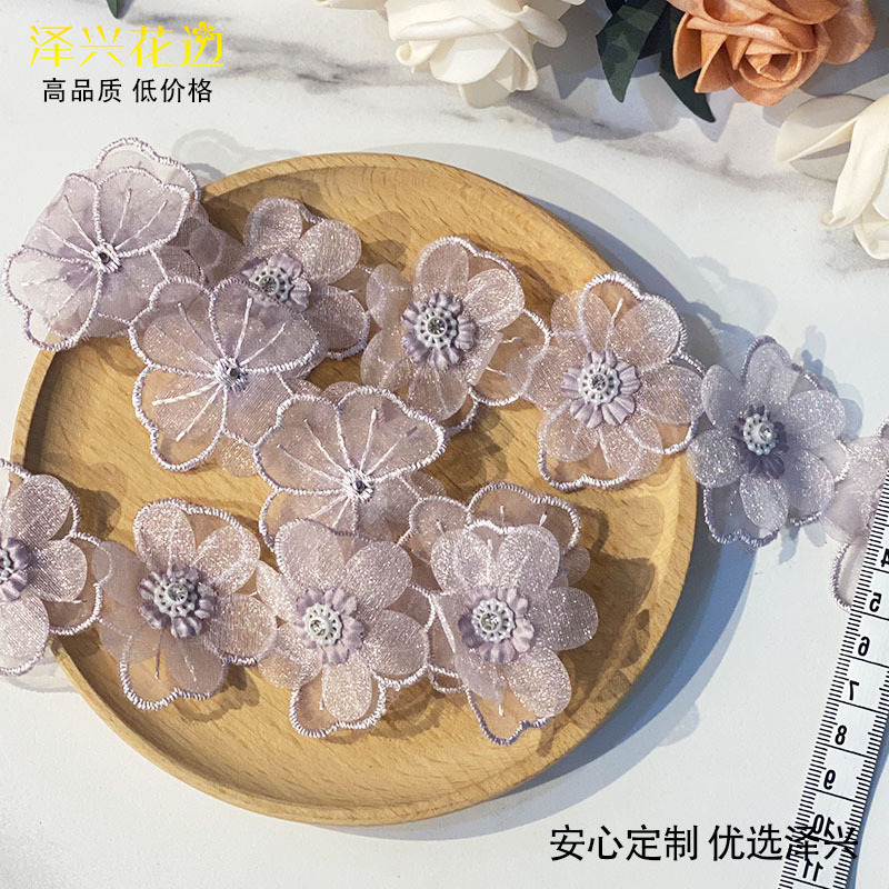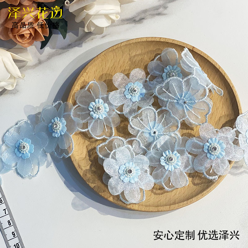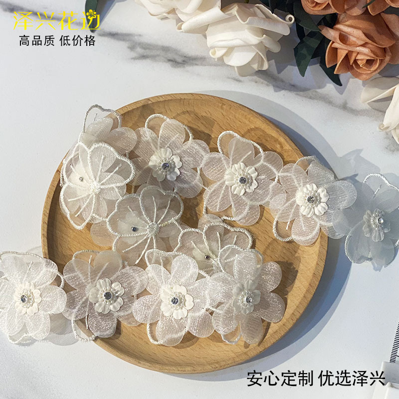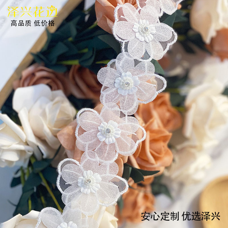 흰색 핑크 Xianqi 시폰 네일 드릴 다층 꽃 레이스 바 코드 커튼 아동복 장식 액세서리