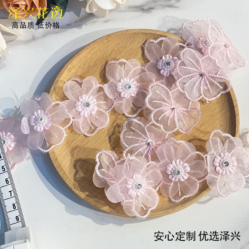 흰색 핑크 Xianqi 시폰 네일 드릴 다층 꽃 레이스 바 코드 커튼 아동복 장식 액세서리스토어 가기