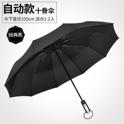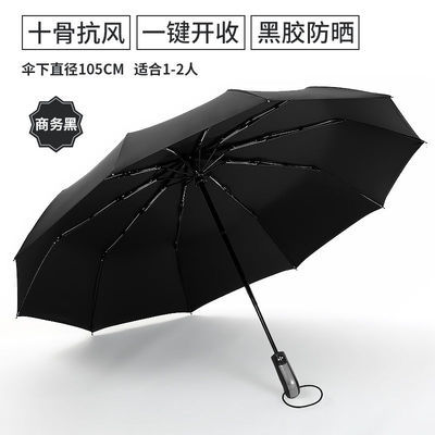 10 뼈 완전 자동 우산 방풍 블랙 고무 써니 및 비 방지 우산 3 배 광고 접는 우산 자외선 방지 차양스토어 가기