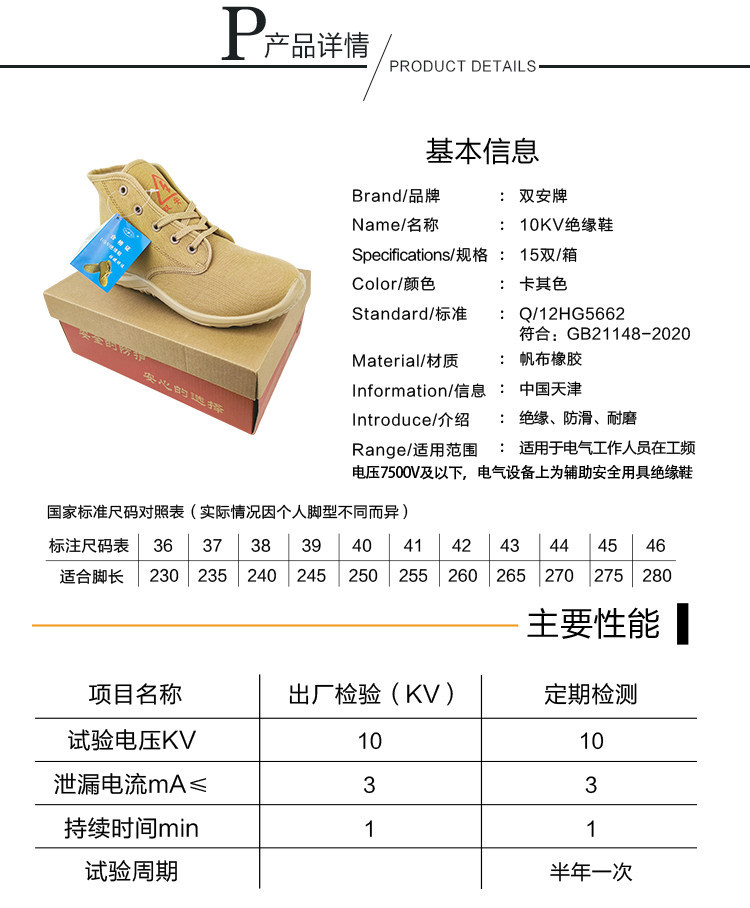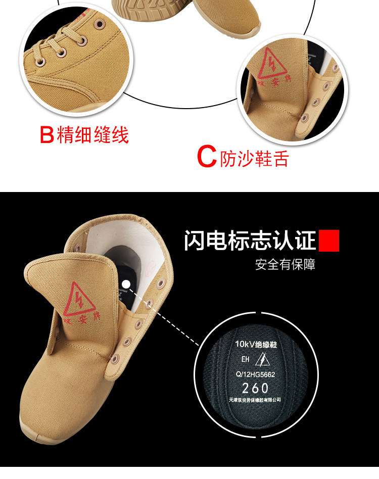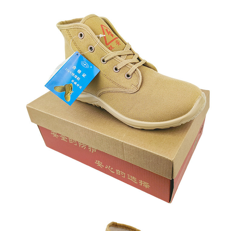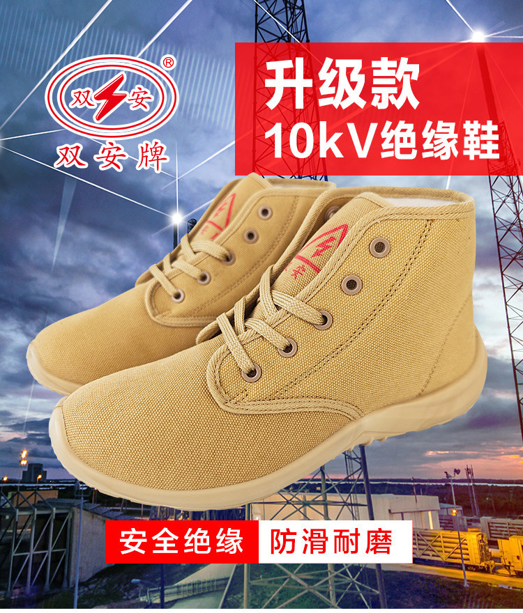 솽안 10KV 절연화 중간 높이 캔버스 안전화, 전기 충격 방지, 미끄럼 방지, 내마모성, 노동 보호화, 베이지색, 사계절 작업화, 재고 있음스토어 가기