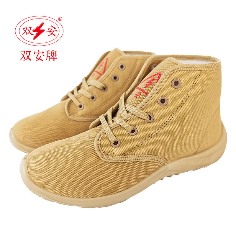 솽안 10KV 절연화 중간 높이 캔버스 안전화, 전기 충격 방지, 미끄럼 방지, 내마모성, 노동 보호화, 베이지색, 사계절 작업화, 재고 있음