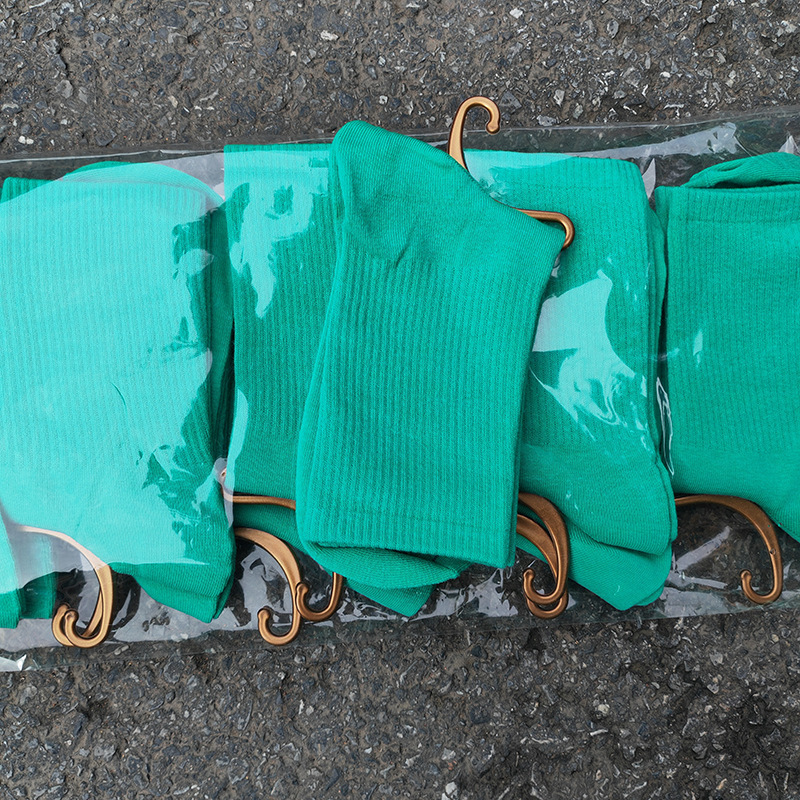 注:本产品是女士200针高橡筋彩色堆堆袜,单色10双一个中包,每双带挂钩