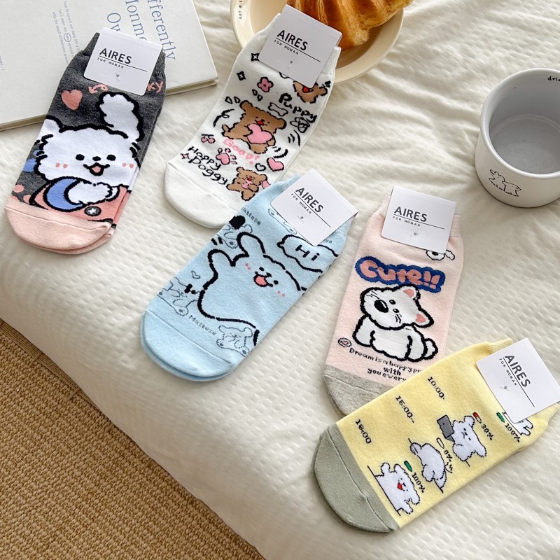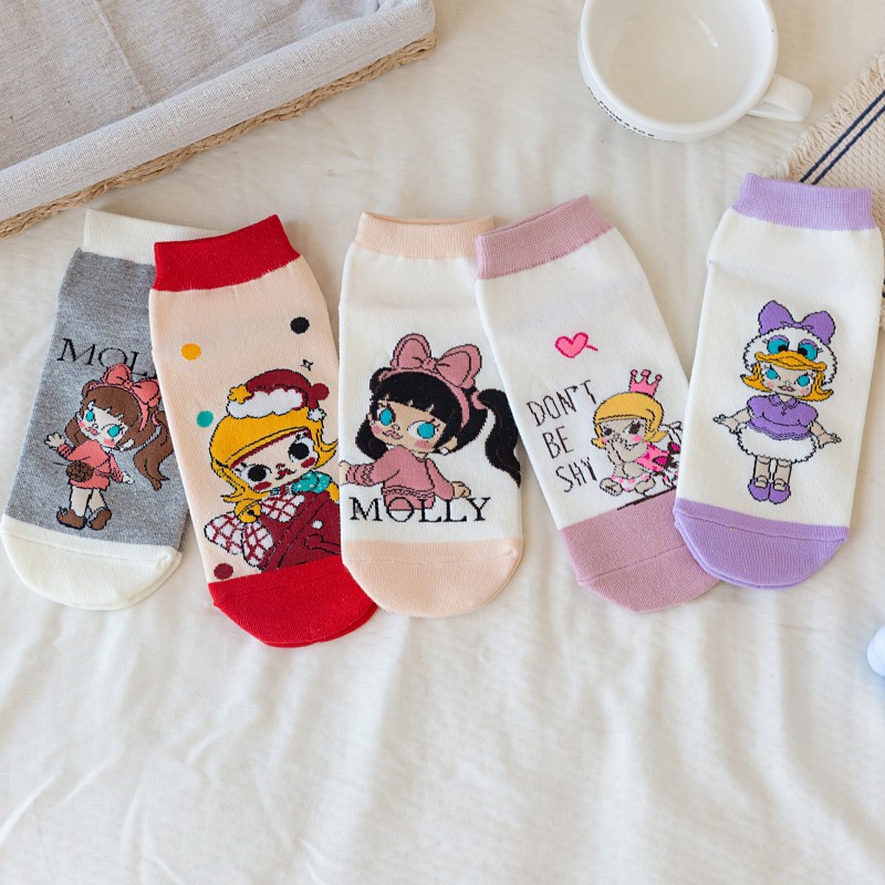 20 봄과 여름 새로운 스트레이트 보트 양말 여성 입체 만화 여성 양말 한국어 버전 맞춤형면 양말 도매