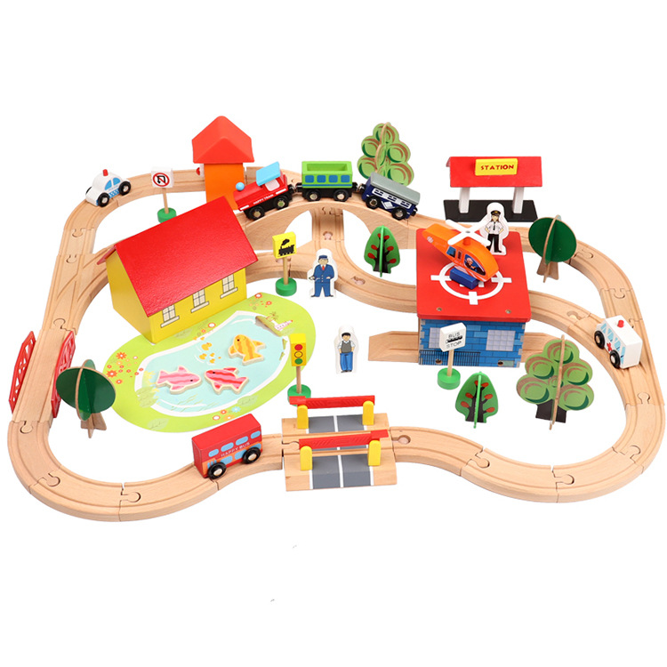 70 조각 철도 차 조화 작은 기차 세트 나무 어린이 퍼즐 빌딩 블록 조립 장난감 소년 소녀스토어 가기