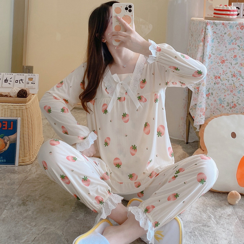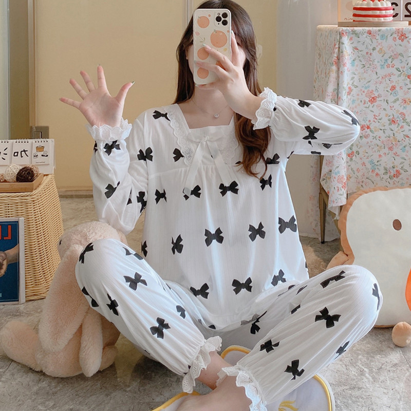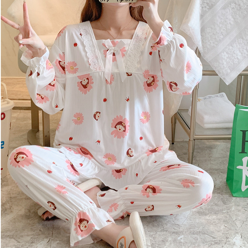 봄과 가을 공주 긴팔 잠옷 바지 반팔 여성용 얇은 만화 스포츠 홈웨어 한국식 귀여운 투피스 세트