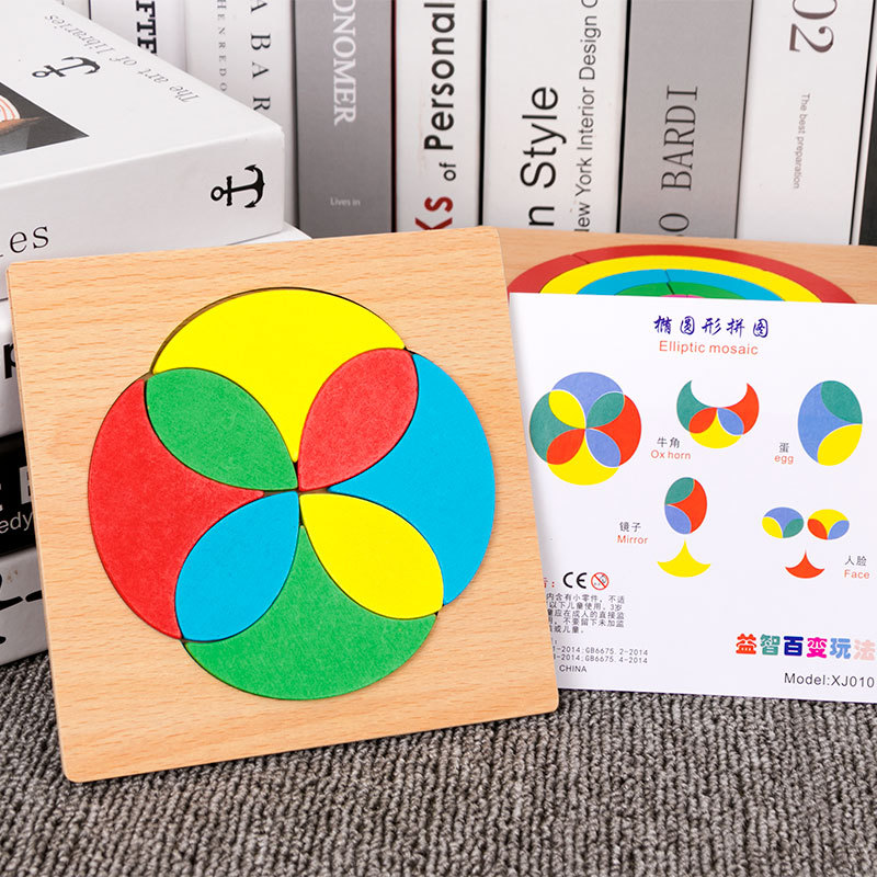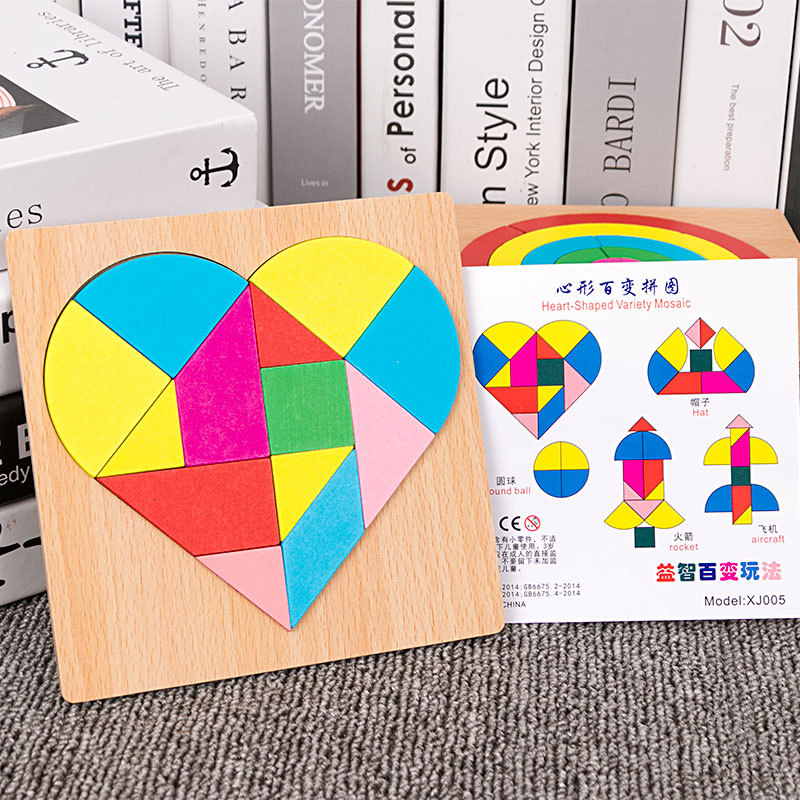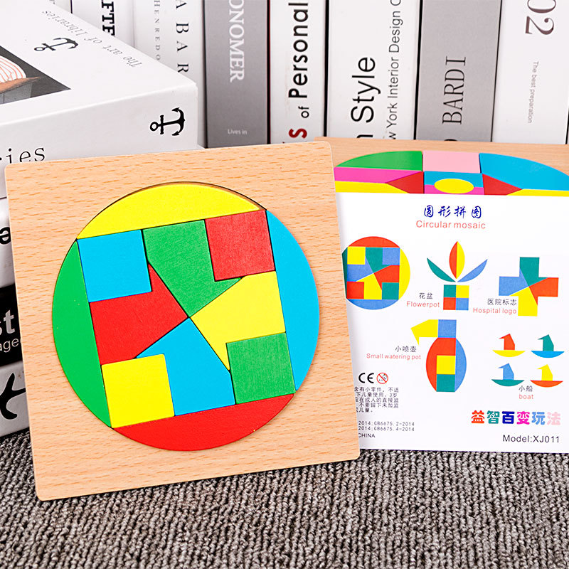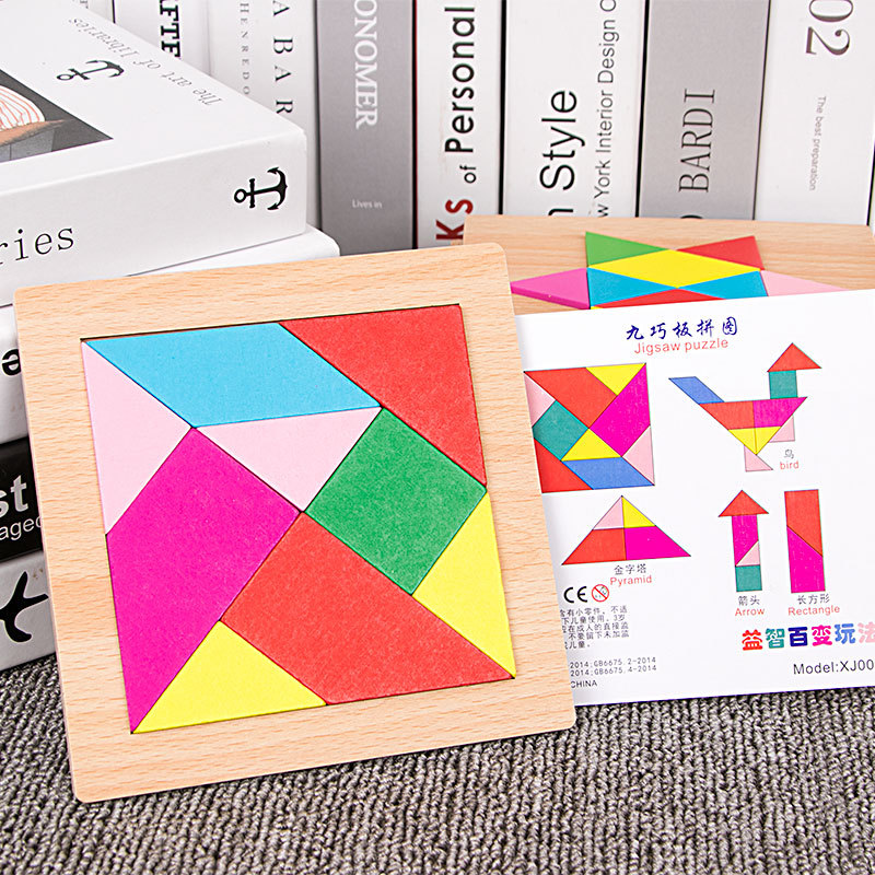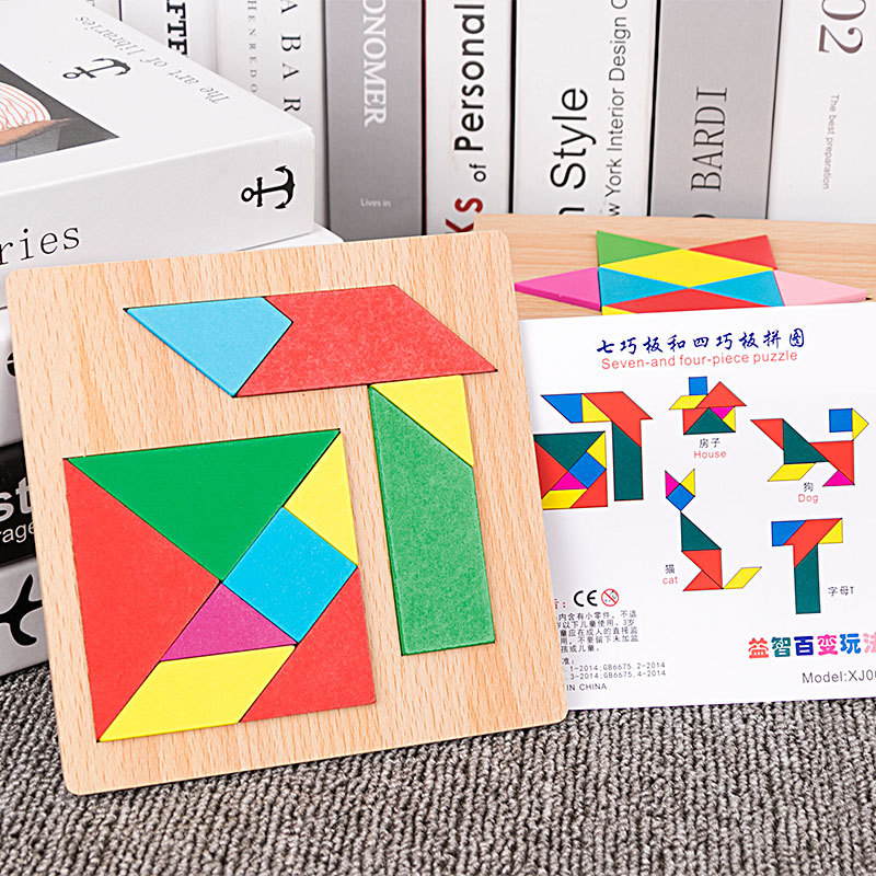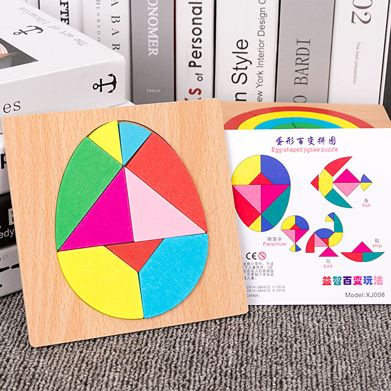 어린이 조기 교육 교구, 지능 개발 퍼즐, 기하학적 모양 블록, 재미있는 칠교형 퍼즐, 유아 및 초등학생용, 3-6세, 나무 재질