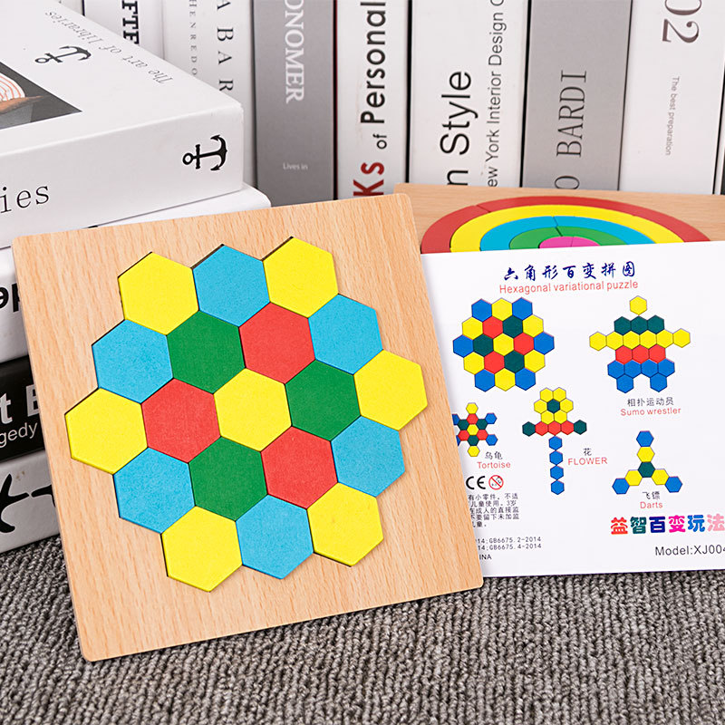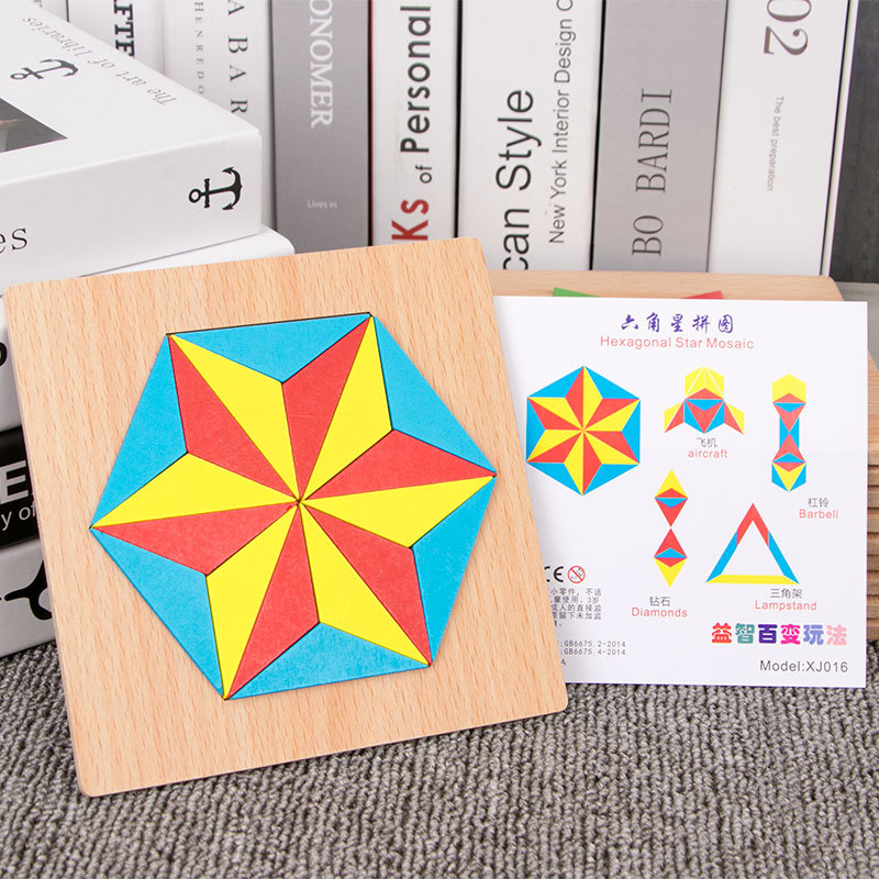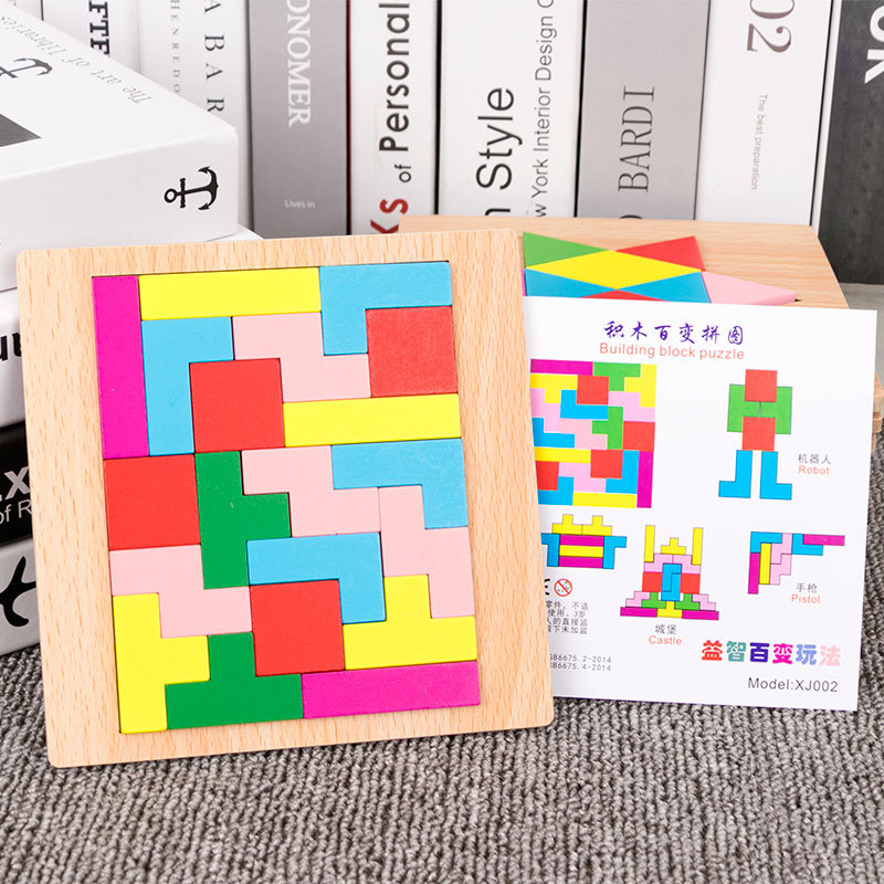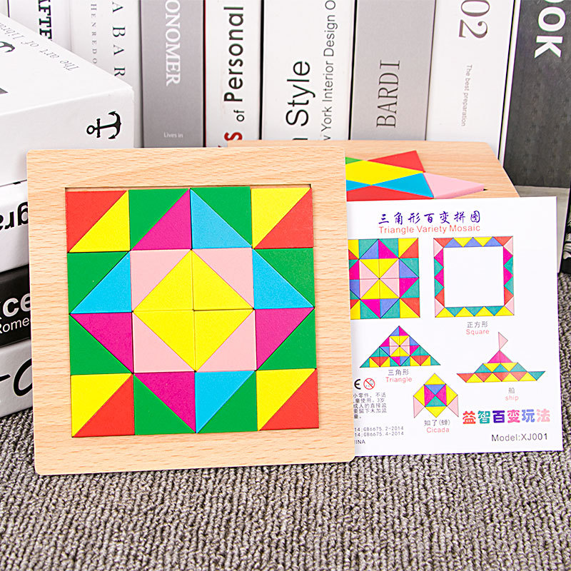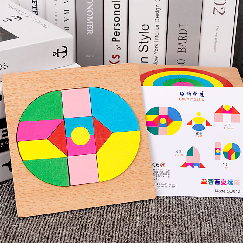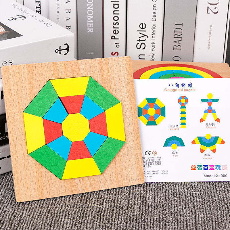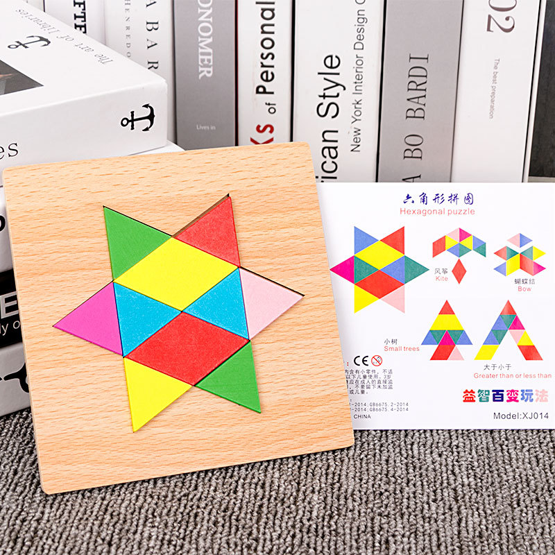 어린이 조기 교육 교구, 지능 개발 퍼즐, 기하학적 모양 블록, 재미있는 칠교형 퍼즐, 유아 및 초등학생용, 3-6세, 나무 재질