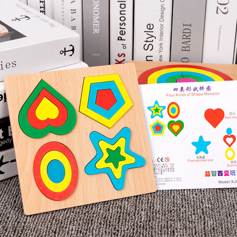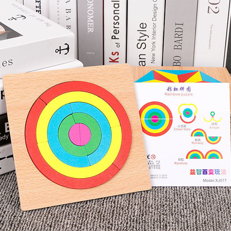 어린이 조기 교육 교구, 지능 개발 퍼즐, 기하학적 모양 블록, 재미있는 칠교형 퍼즐, 유아 및 초등학생용, 3-6세, 나무 재질스토어 가기