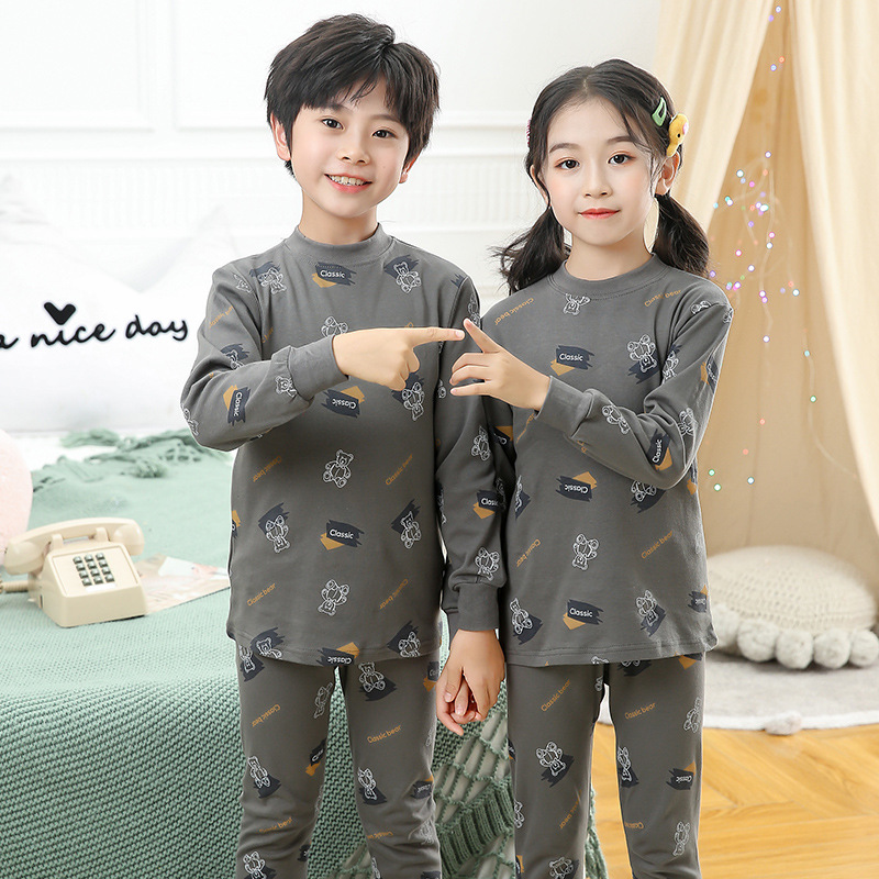 어린이 속옷 세트, 어린이 순면 가을 옷 세트, 남아 및 여아 순면 라운드넥 홈웨어 잠옷, 만화 프린트스토어 가기
