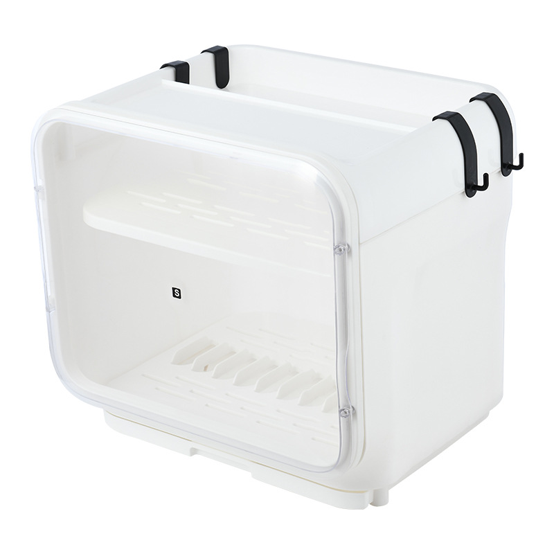 식기 그릇 상자 접시 배수 랙 플라스틱 찬장 가정용 뚜껑이있는 주방 그릇 랙 그릇 젓가락 보관 상자