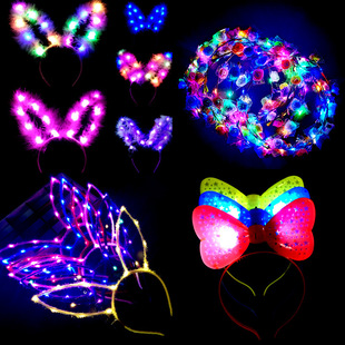 夜市儿童发光玩具闪光头饰花环蝴蝶结兔耳朵发箍地推货源扫码礼品