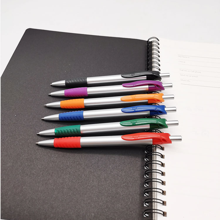 此款笔为塑料按动圆珠笔,弯挂钩带皮套笔,学生用笔,办公文具广告笔,喷漆,实色,白杆均可,可以有不同的配法,常规颜色有红蓝绿白黑等颜色,可印刷各种文字图案,笔长14cm,常规外贸包装:50支/盒,1000支/箱,笔芯有0.7/1.0