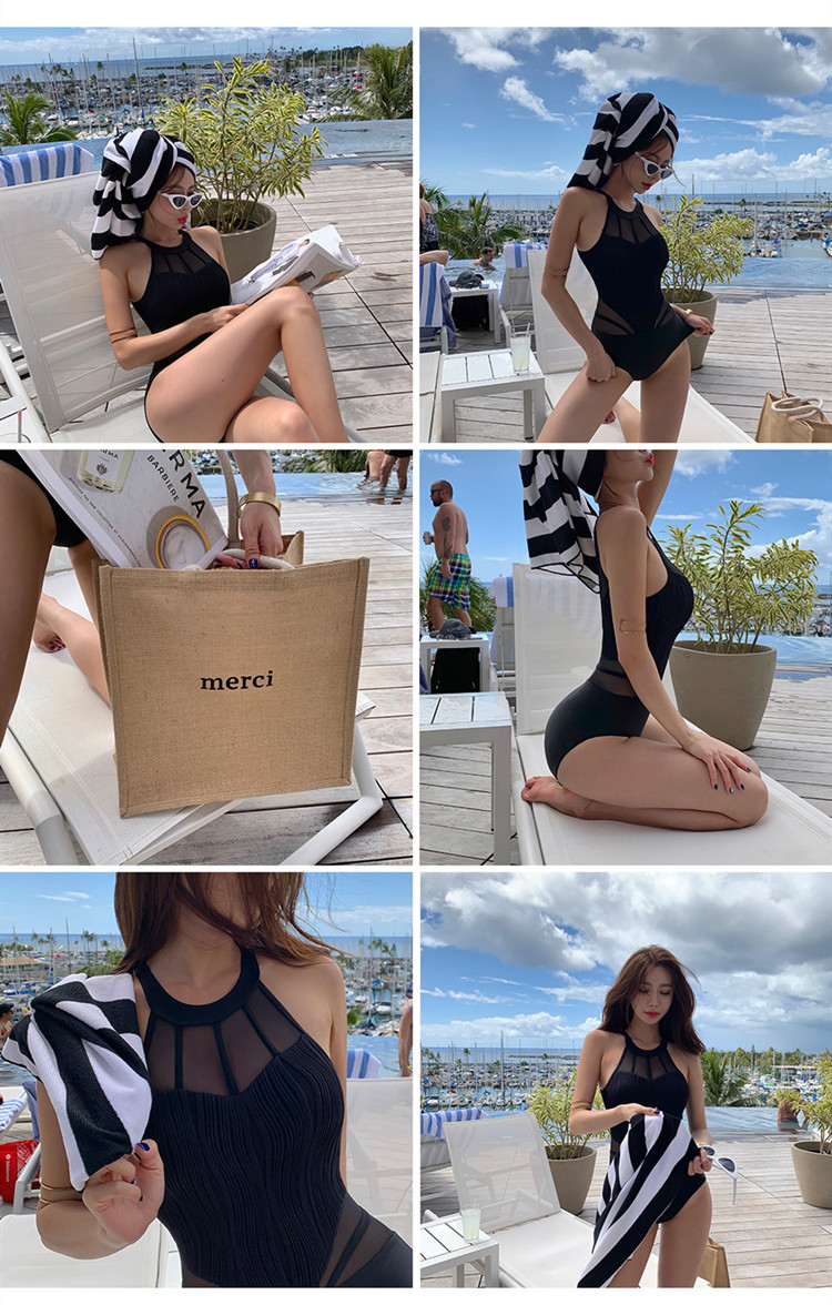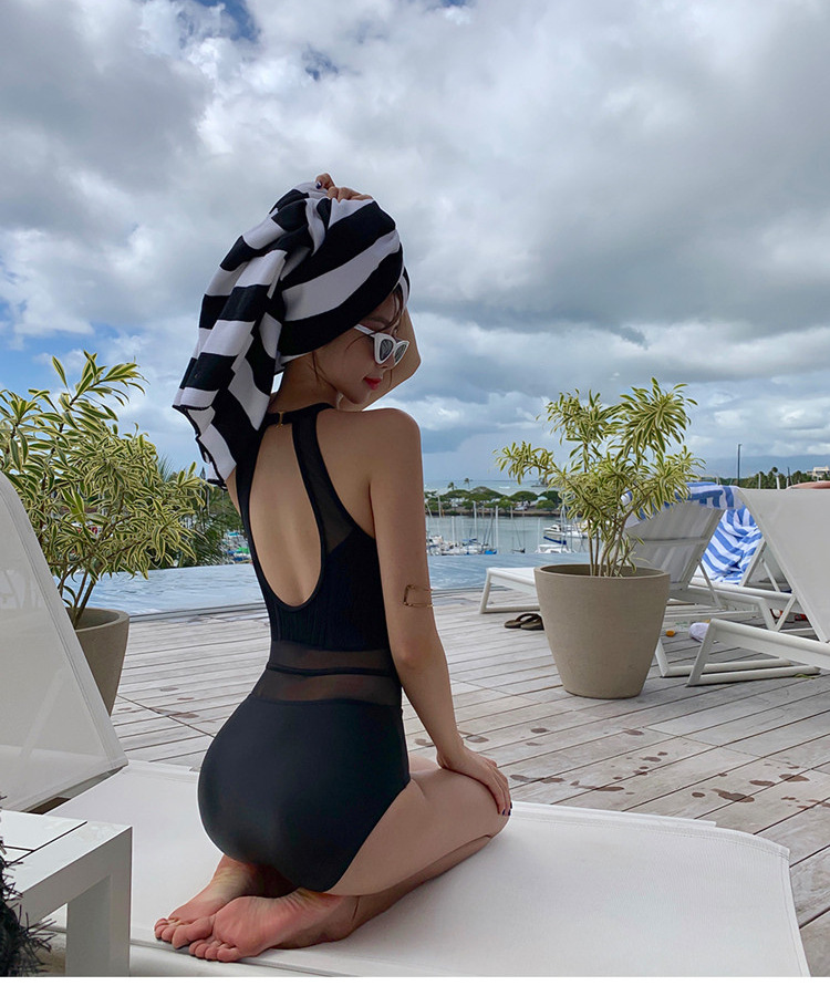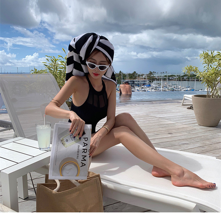 한국 in 수영복 여성용 섹시한 배꼽 덮기 슬리밍 큰 가슴 중공 수영복 블랙 원피스 작은 가슴 푸시업 수영복