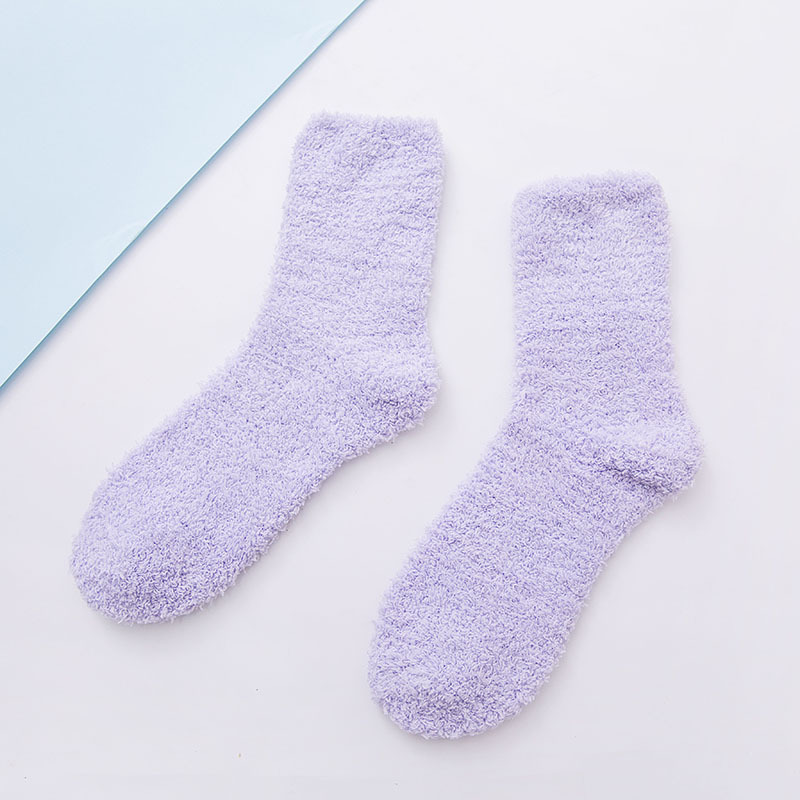 여성용 산호 벨벳 양말 솔리드 컬러 편안한 두꺼운 따뜻한 수면 감금 양말 하프 벨벳 바닥 양말 A88스토어 가기