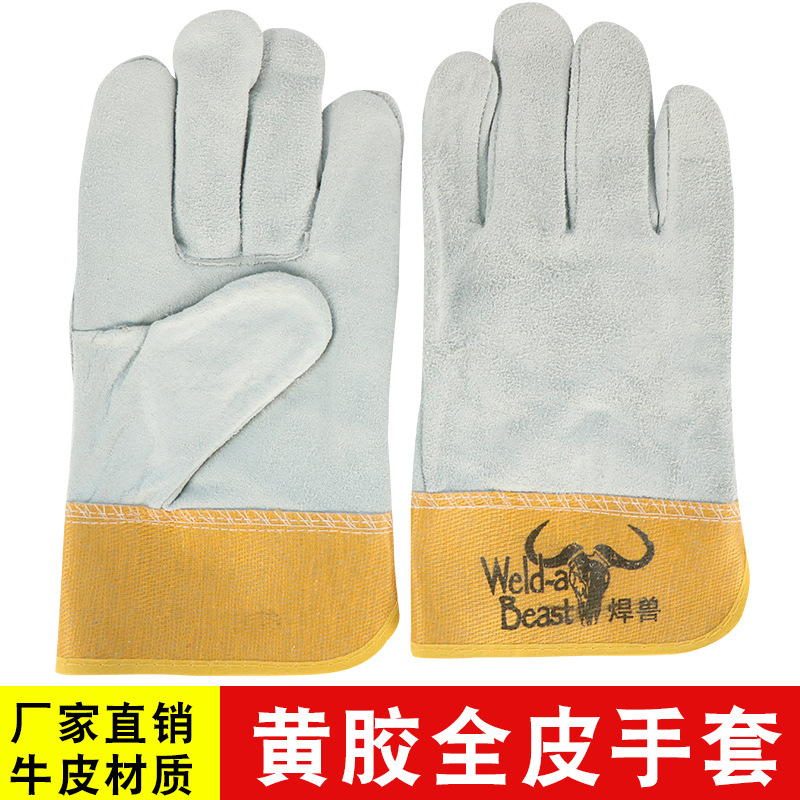 • 용접 야수 노란색 껌 짧은 전체 가죽 장갑