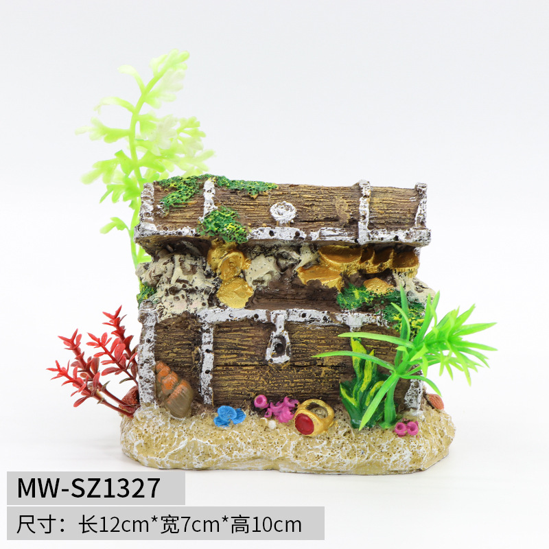 어항 보물 상자 장식품 수지 공예 수족관 장식 보물 상자 시뮬레이션 물 잔디 어항 파충류 상자 조경