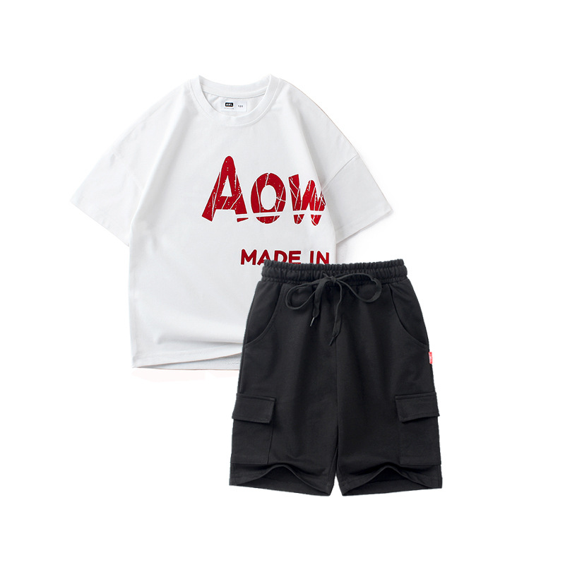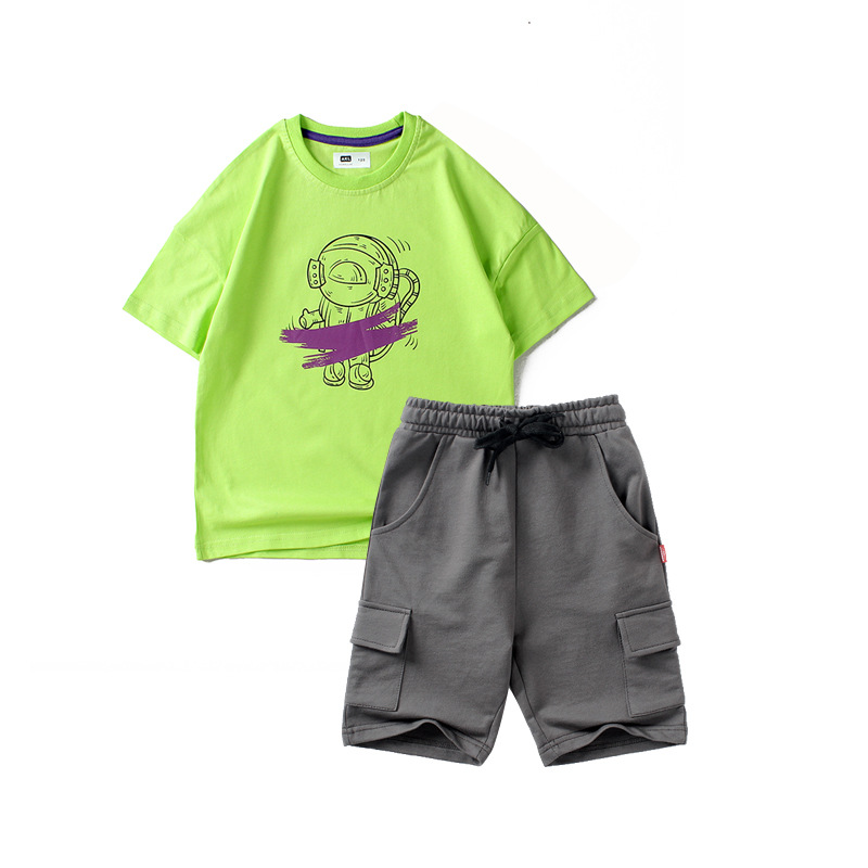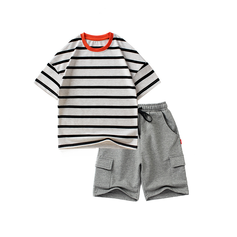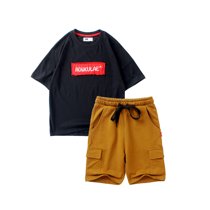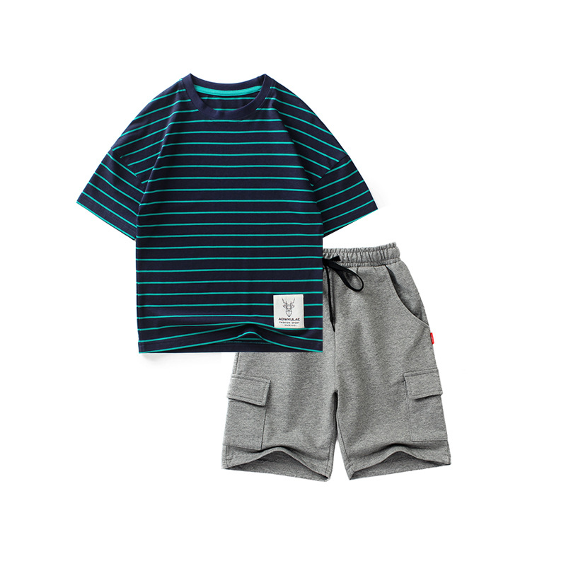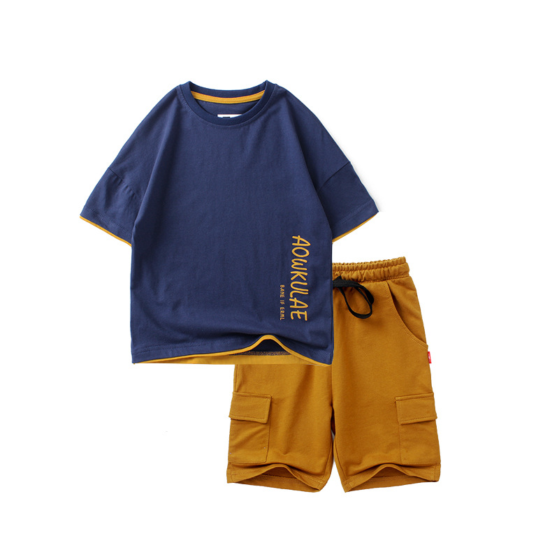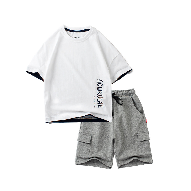 아동 의류 여름 새로운 한국어 버전 반팔 어린이 세트 도매 큰 소년 스포츠 반바지 여름 세트
