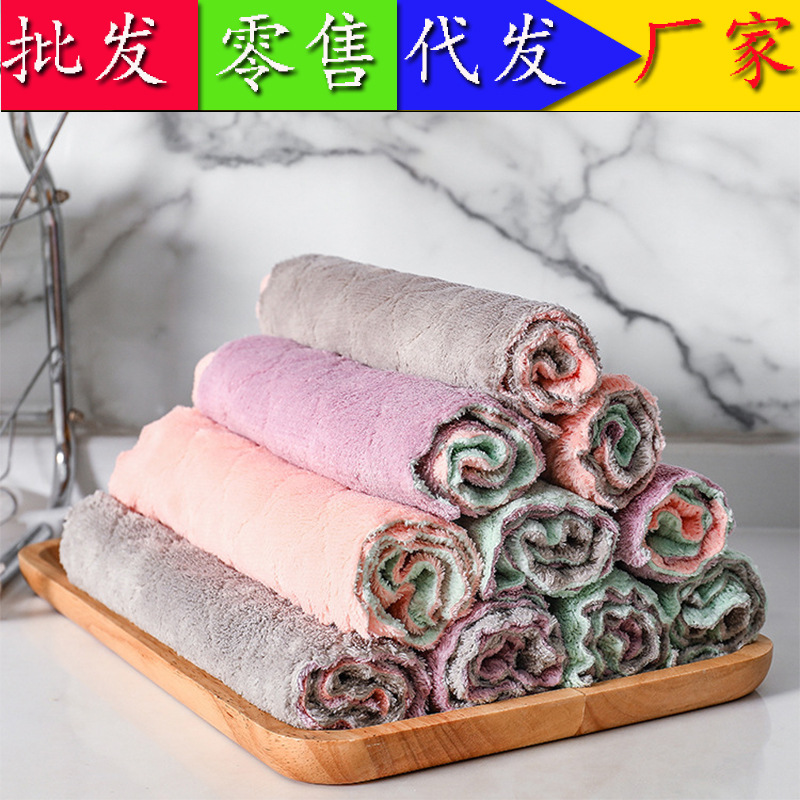 보풀이없는 양면 흡수 걸레 두꺼운 산호 양털 손 닦기 주방 욕실 접시 타월 흡수 타월 손수건스토어 가기