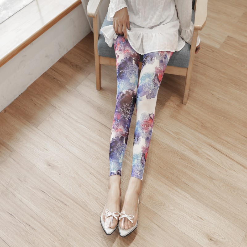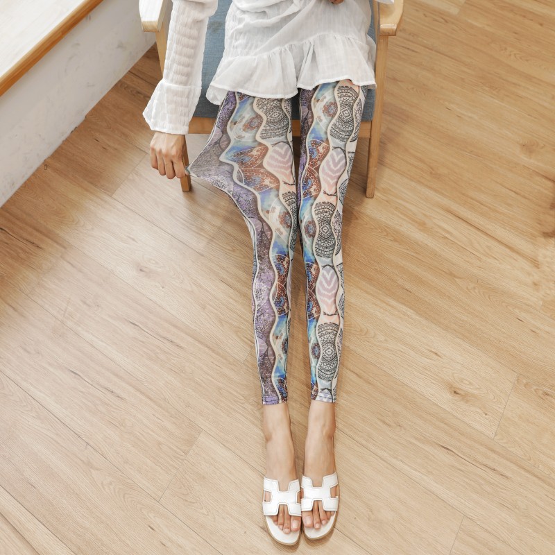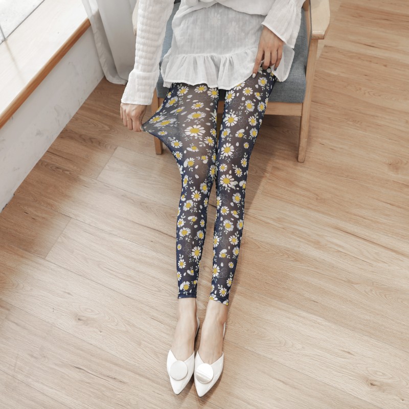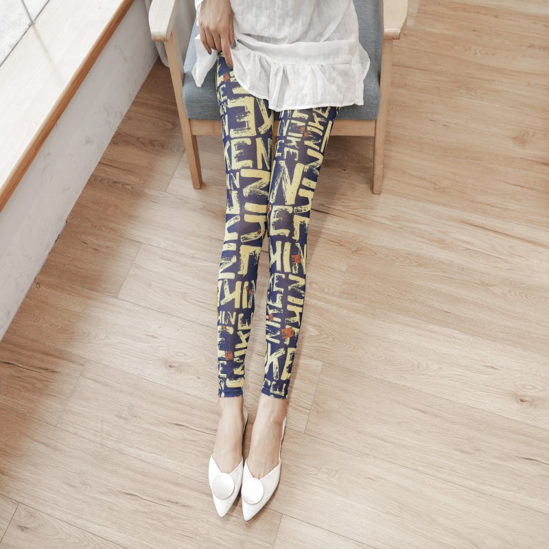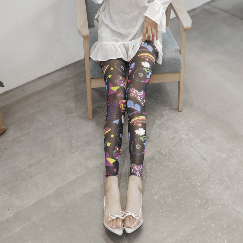 프린트 메쉬 레깅스 오버웨어 여름 얇은 쿨 자외선 차단제 초박형 메쉬 바지 여성용 대형 탄성 슬림 여성용 바지스토어 가기