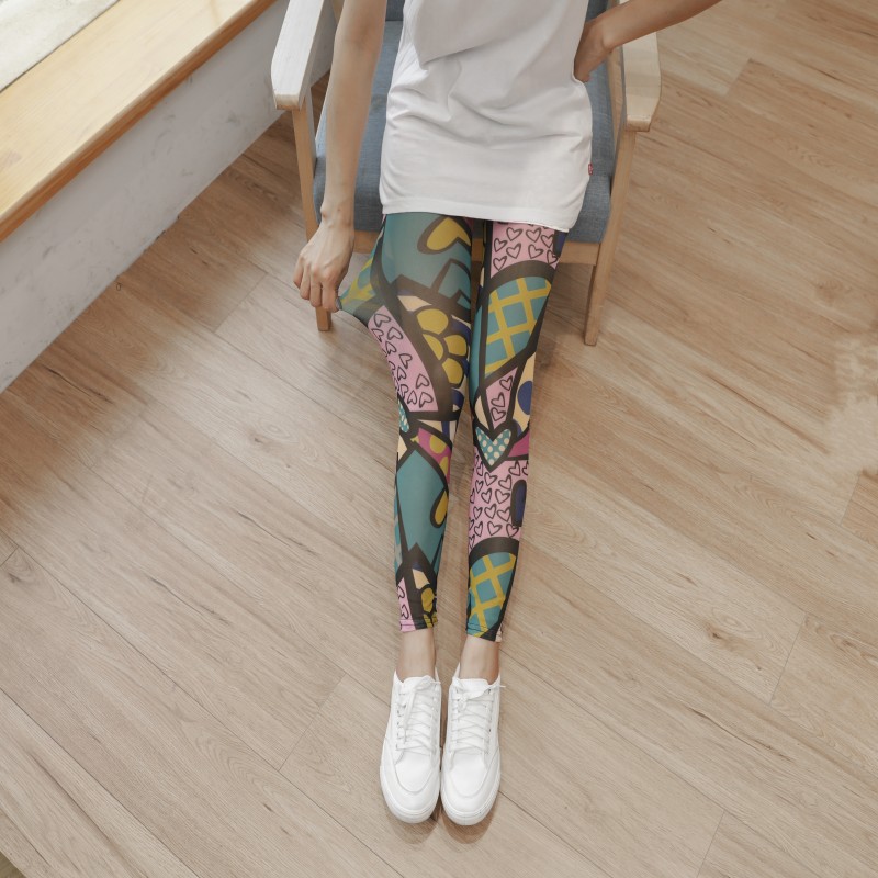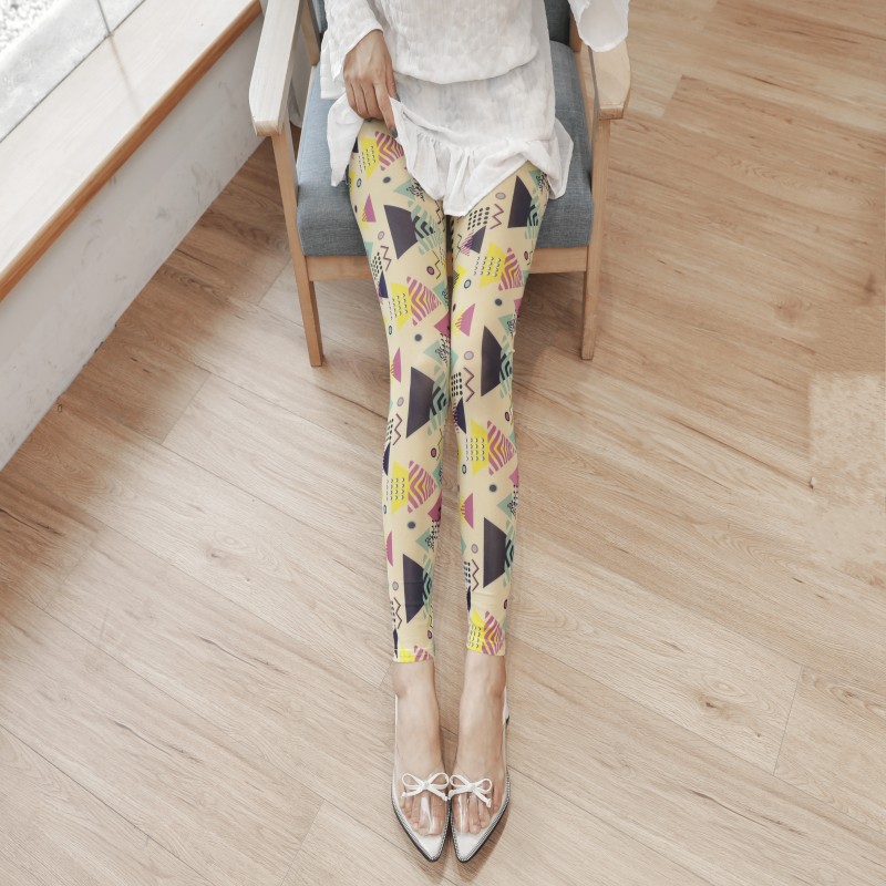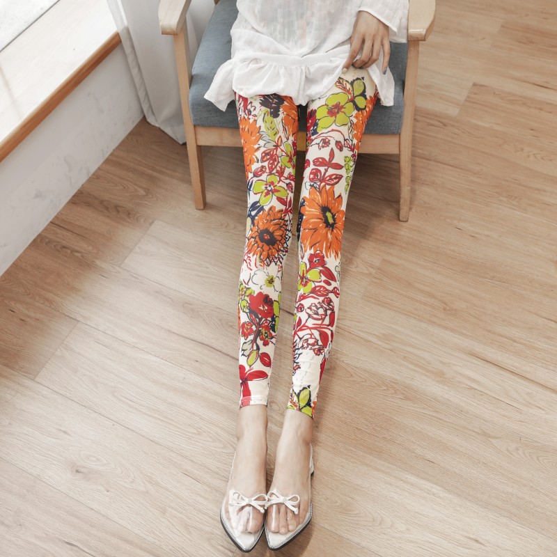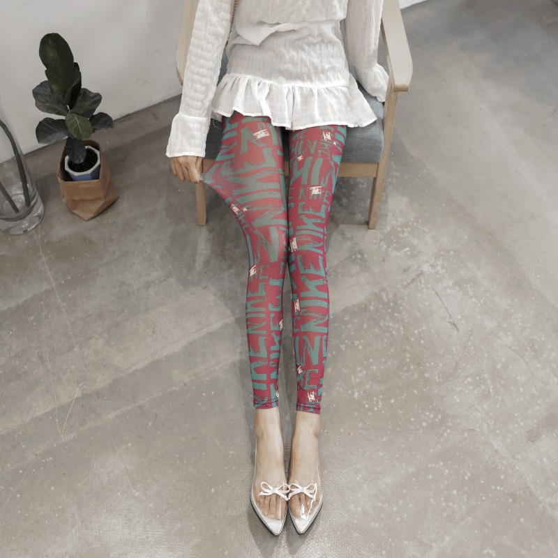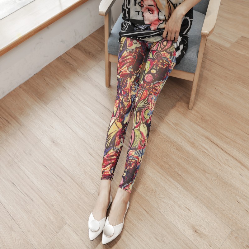 프린트 메쉬 레깅스 오버웨어 여름 얇은 쿨 자외선 차단제 초박형 메쉬 바지 여성용 대형 탄성 슬림 여성용 바지스토어 가기