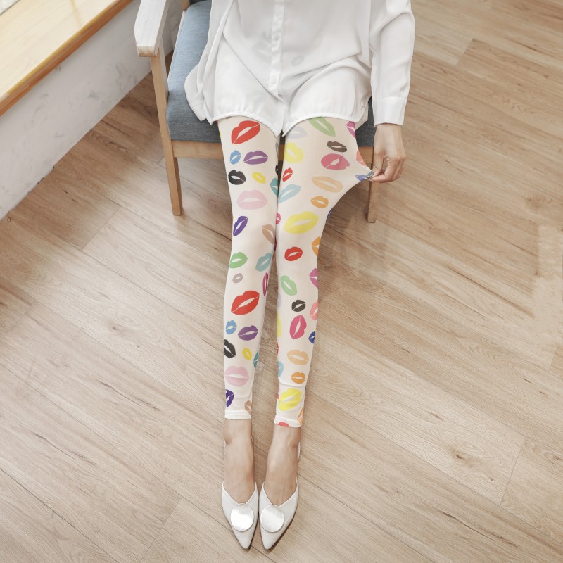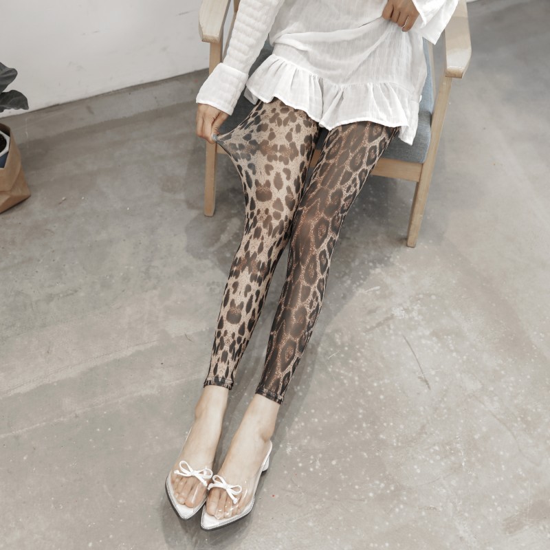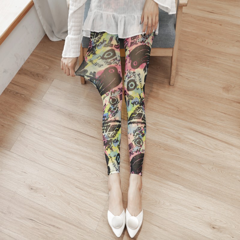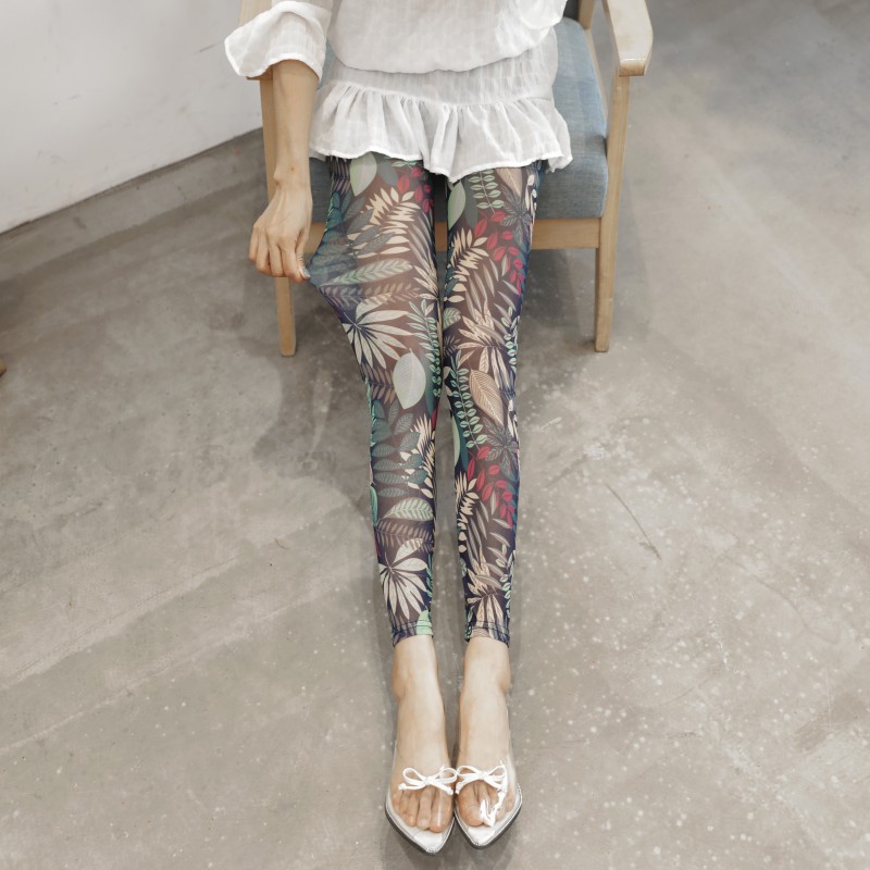 프린트 메쉬 레깅스 오버웨어 여름 얇은 쿨 자외선 차단제 초박형 메쉬 바지 여성용 대형 탄성 슬림 여성용 바지