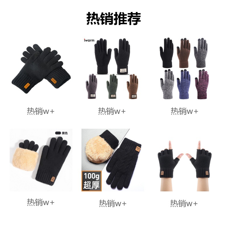 니트 장갑 남성용 특대형 플리스 안감 두꺼운 모직 가을 겨울 보온 운전 야외 터치스크린 장갑스토어 가기