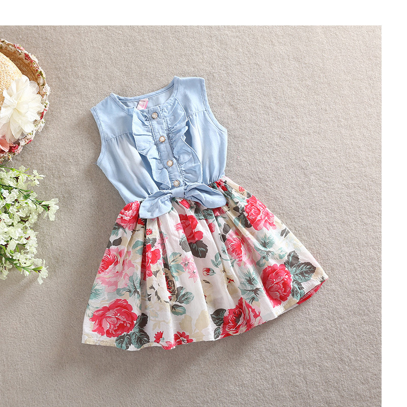 2025 새로운 여름 소녀 스커트 데님 꽃무늬 드레스 대외 무역 오리지널 버전 드롭 배송