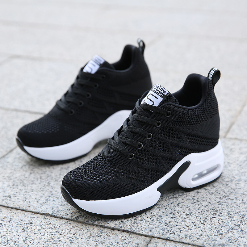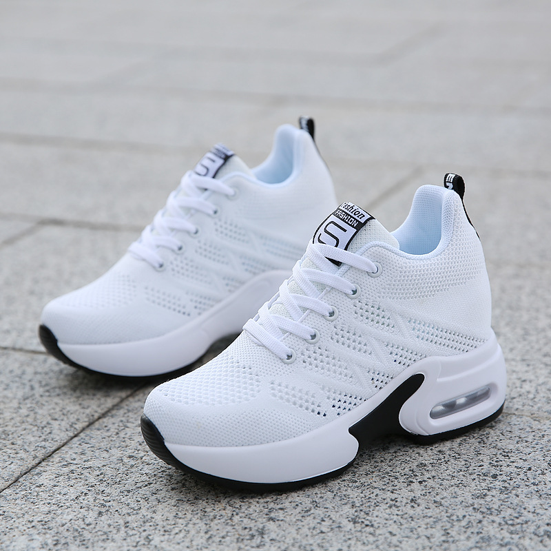 2025년 여성용 키높이 운동화, 화이트 스니커즈, 메쉬 통기성 두꺼운 밑창 플랫폼 슈즈, 여행용 신발스토어 가기