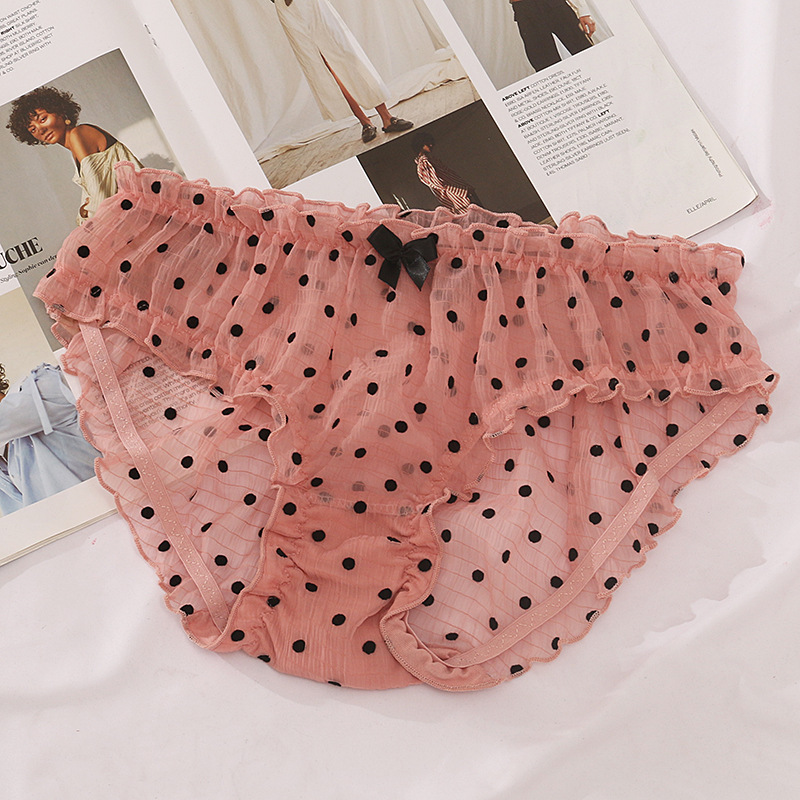 일본의 새로운 도트 자카드 쉬폰 소재 엉덩이 편안한 여성 속옷 캔디 색상 달콤한 귀여운 여성 속옷스토어 가기