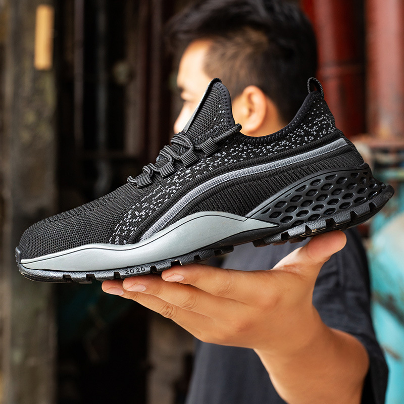 국경 간 플라이 짠 보호 신발, 남성용 노동 보호 신발, 충격 방지 및 찌르기 방지, 경량 통기성 보호 신발, 남성용 내마모성 안전 신발