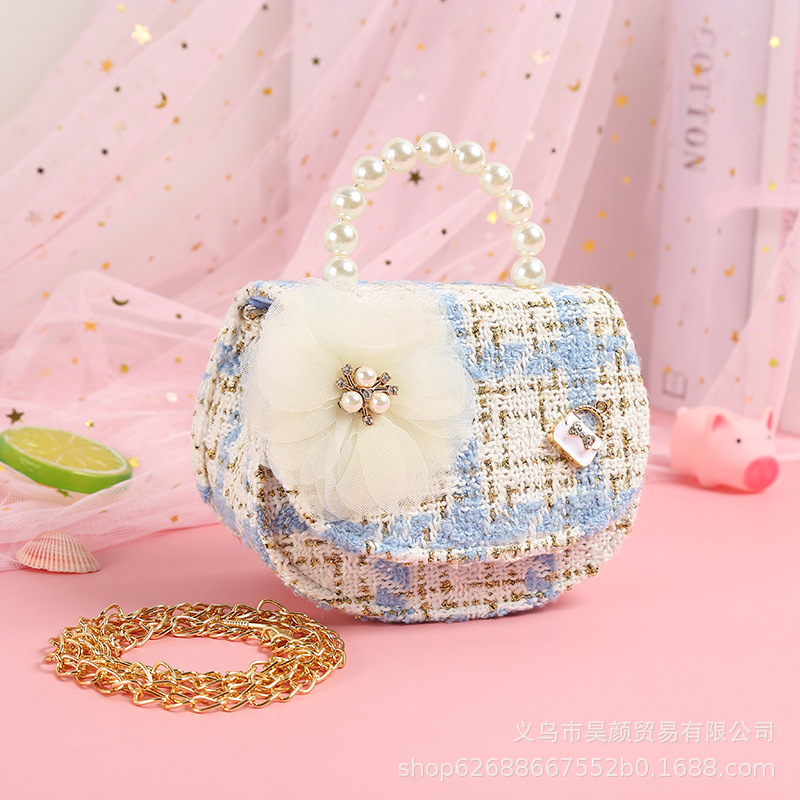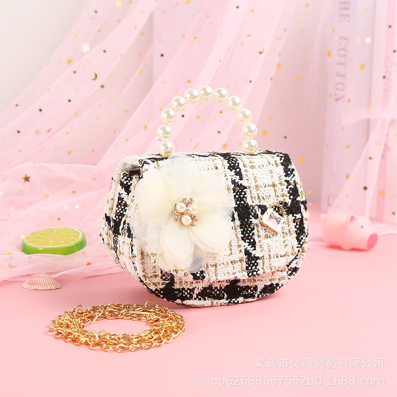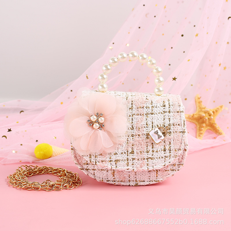2021 향기로운 스타일 유럽 스타일 인기있는 꽃 핸드백 섬세한 크로스바디 이중 사용 휴대용 진주 어린이 가방 619스토어 가기