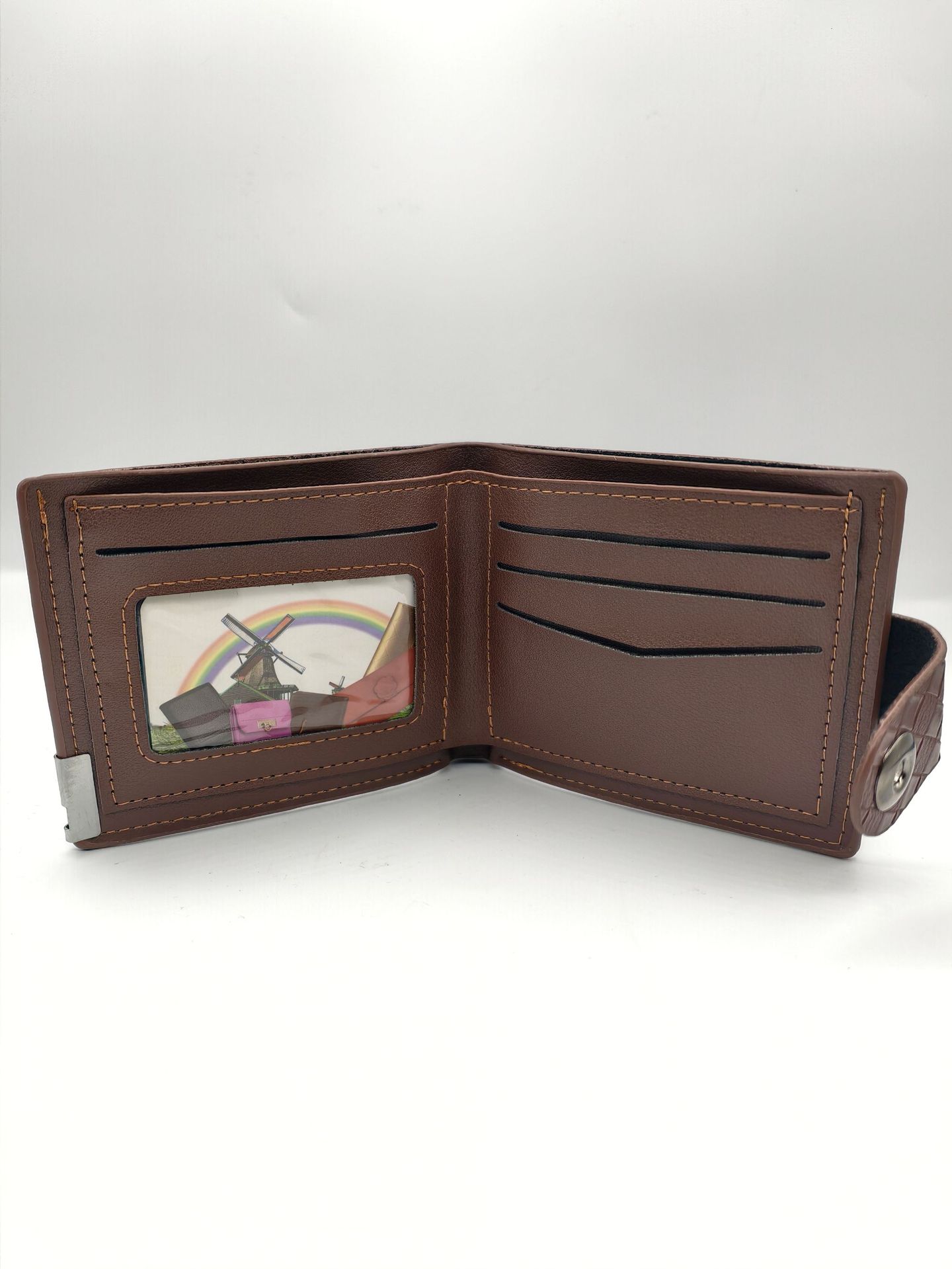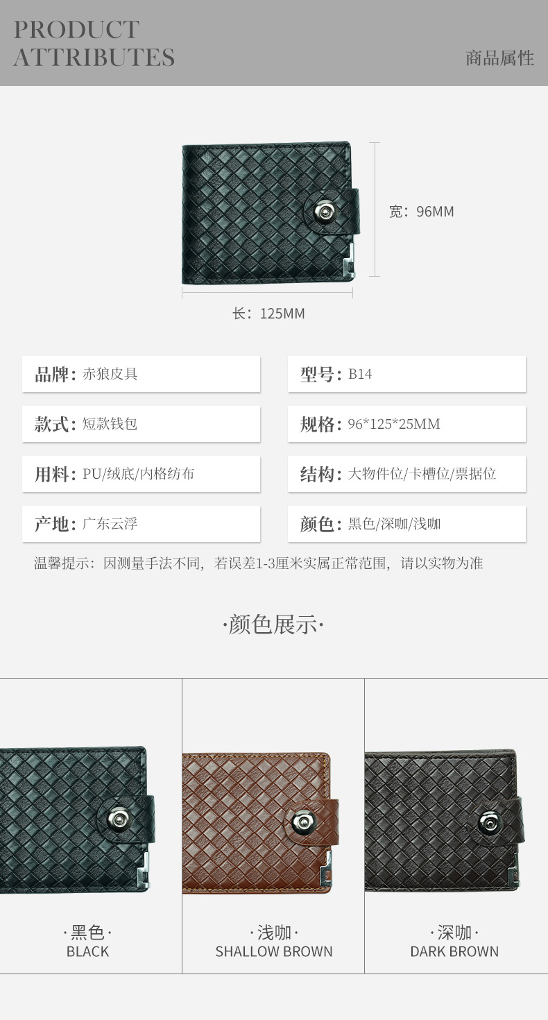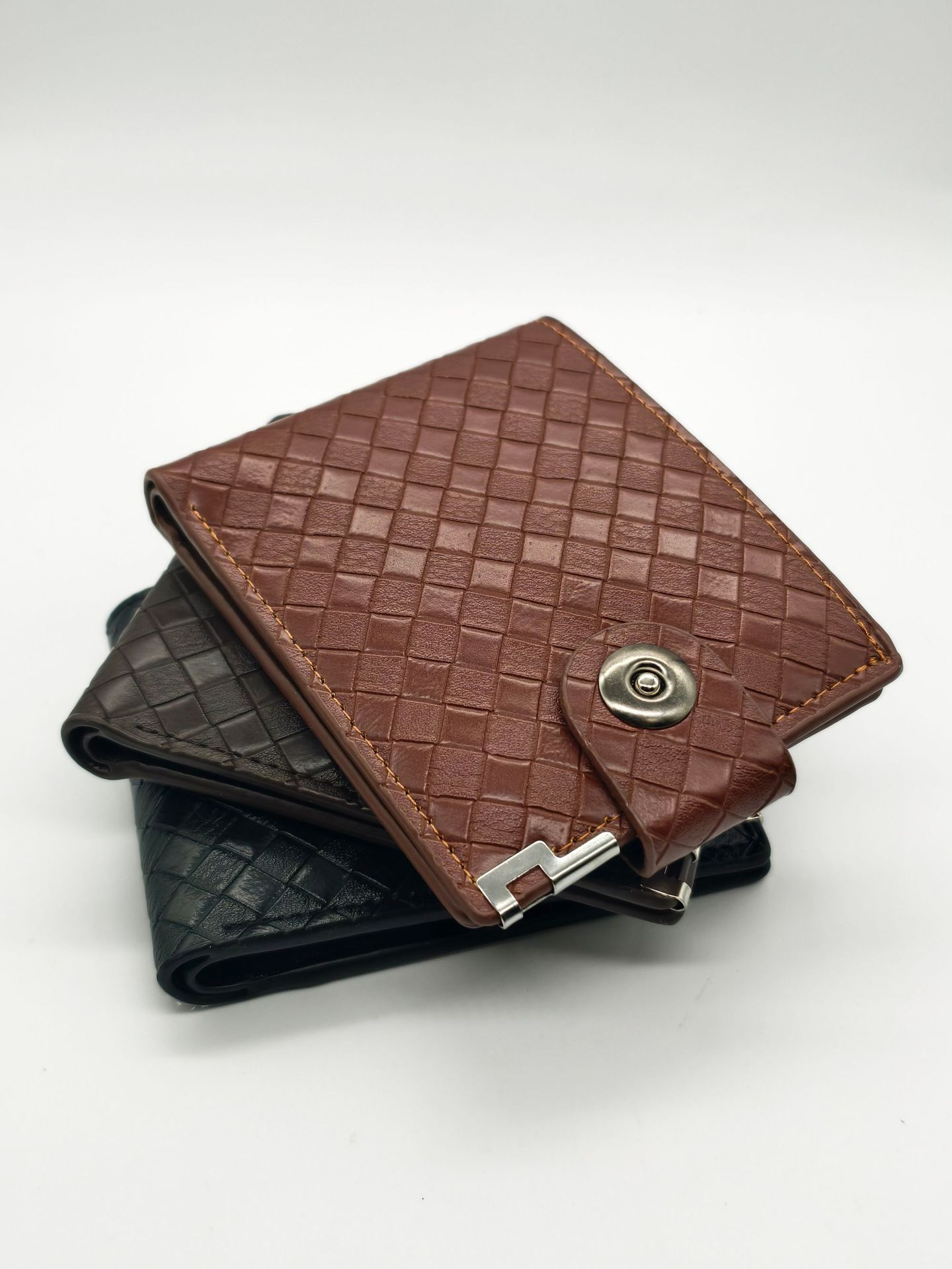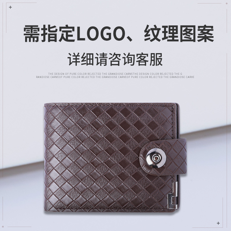 남성용 레트로 직조 패턴 짧은 지갑 남성용 심플 스타일 블랙과 브라운 색상 인조 가죽 질감 지갑스토어 가기