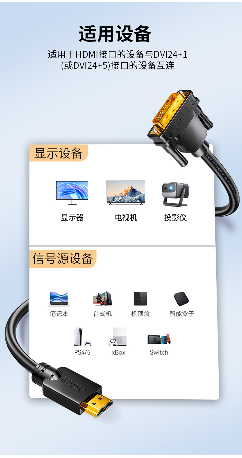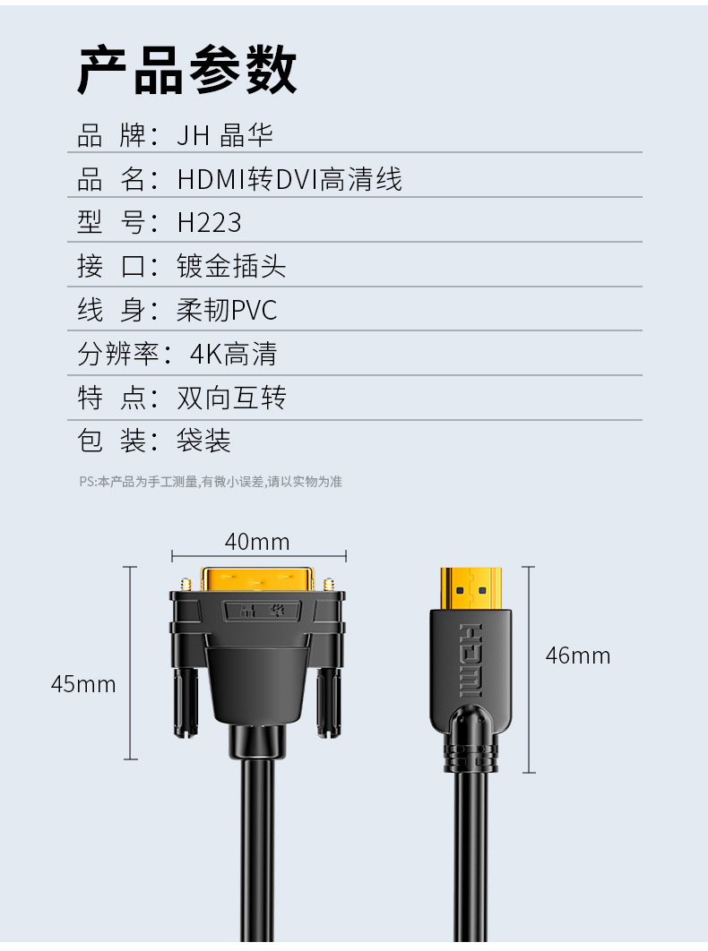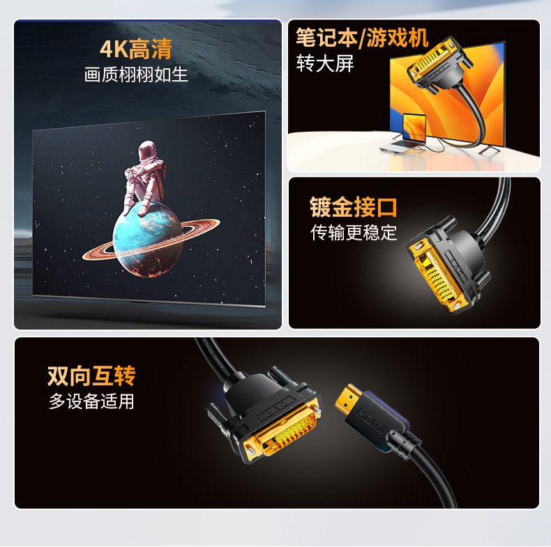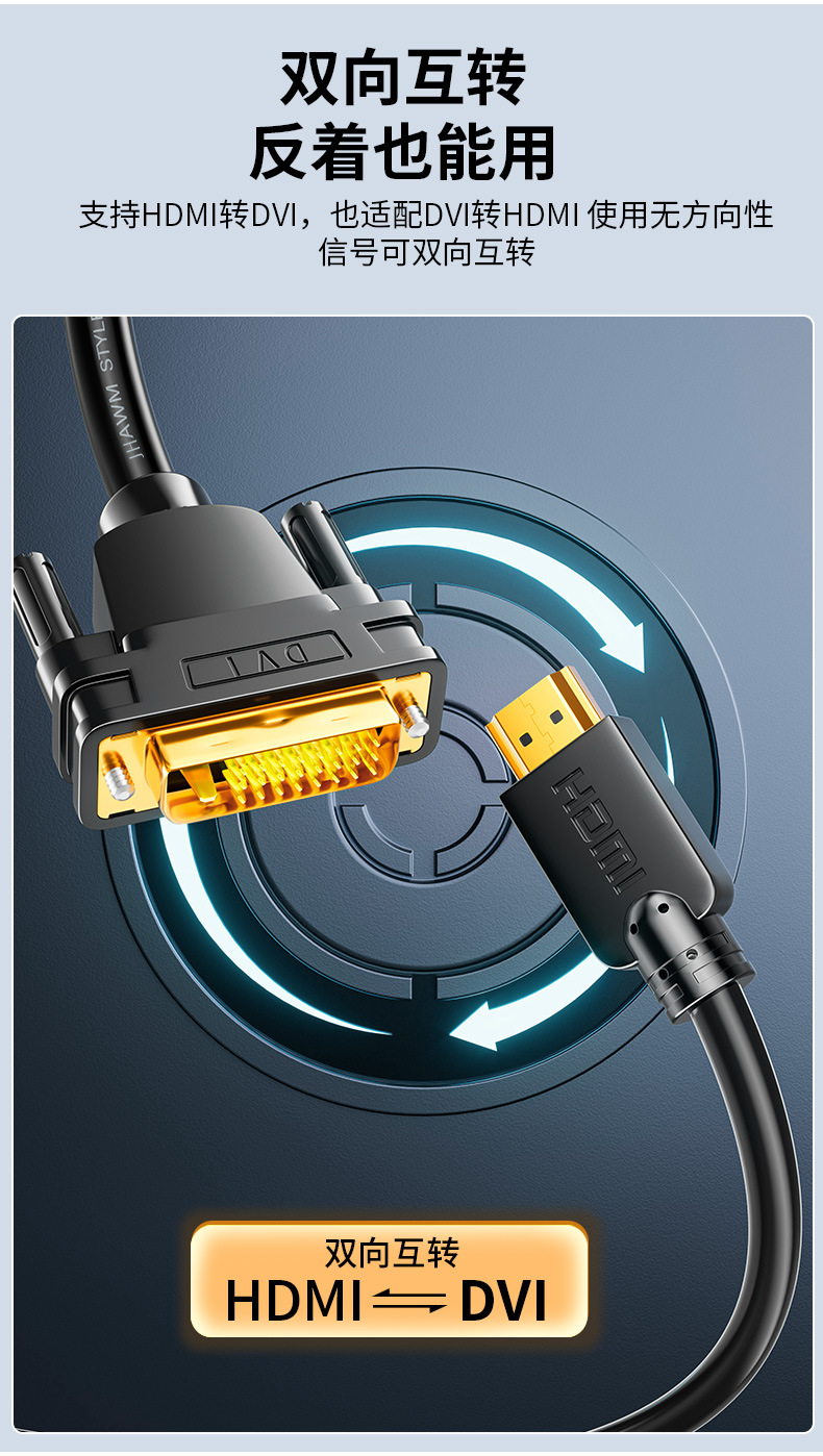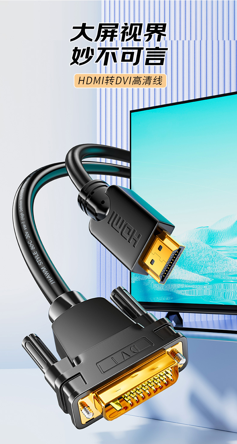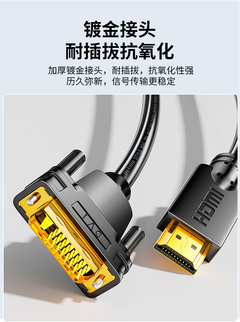 Jinghua HDMI에서 DVI 어댑터 노트북 그래픽 게임 컴퓨터 모니터 양방향 상호 변환 HD 라인