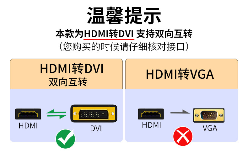 Jinghua HDMI에서 DVI 어댑터 노트북 그래픽 게임 컴퓨터 모니터 양방향 상호 변환 HD 라인스토어 가기