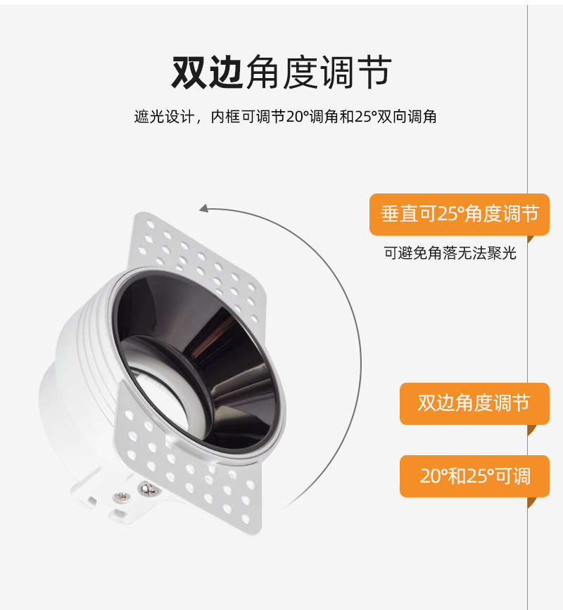 공장 직판 각도 조절 가능 무테 GU10 링 모듈 라이트컵, 깊은 눈부심 방지 스포트라이트컵, MR16 링 라이트 커버