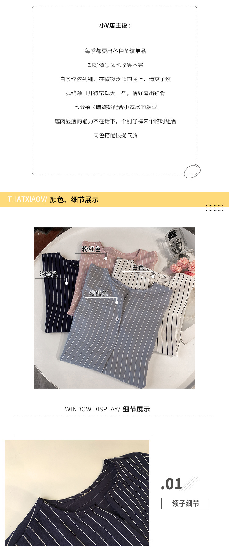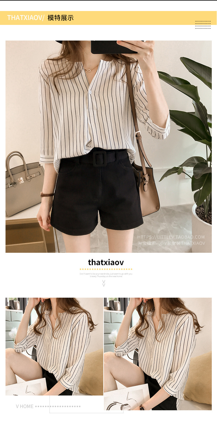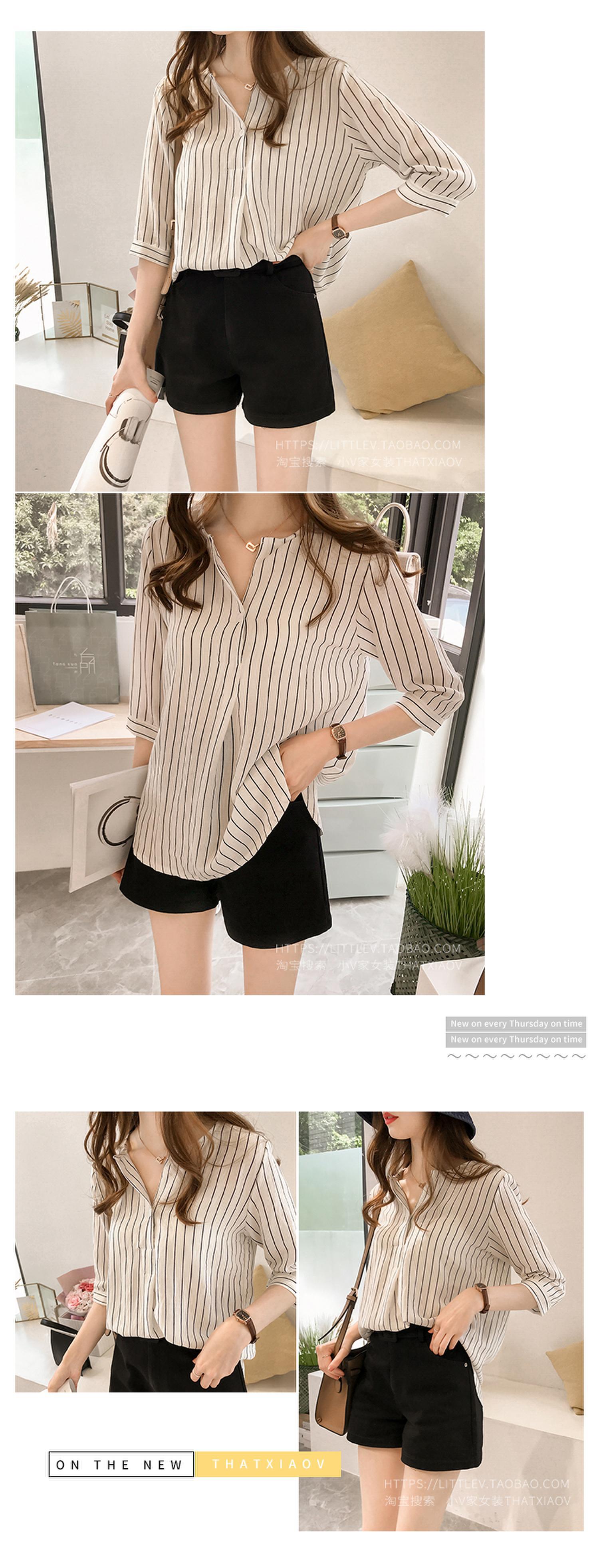 2024 새로운 여름 한국 스타일 패션 대형 라운드 넥 스트라이프 셔츠 여성 7부 소매 탑 루즈 캐주얼 셔츠스토어 가기