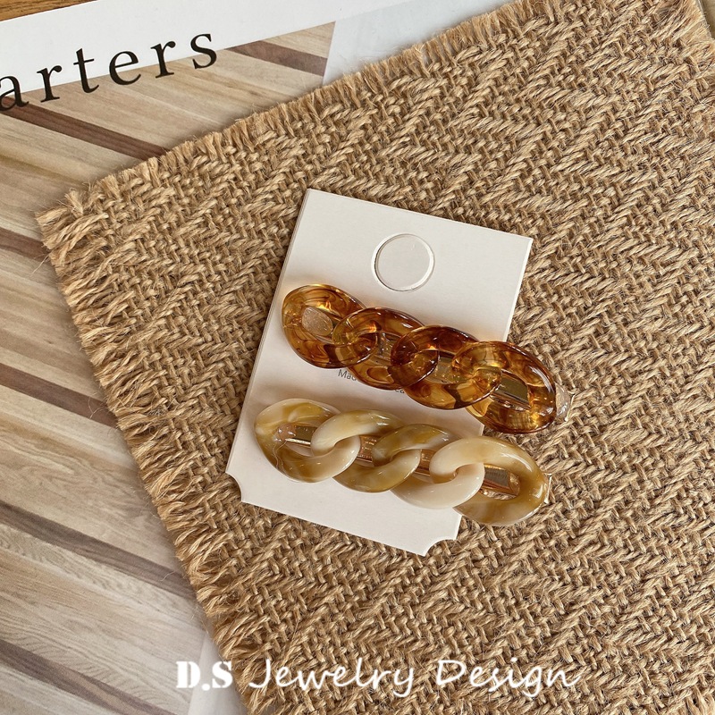 한국 스타일 복고풍 동대문 앰버 아이보리 진주 체인 프레스 클립 머리핀 세트 네트워킹 빨간 가장자리 클립 헤어 액세서리스토어 가기