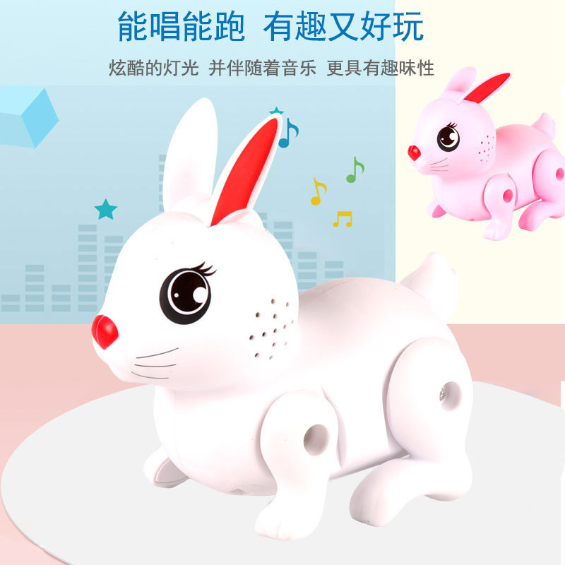 전기 플래시 점핑 토끼 빛 음악 자동 워킹 발광 점프 토끼 시뮬레이션 동물 어린이 장난감 도매스토어 가기