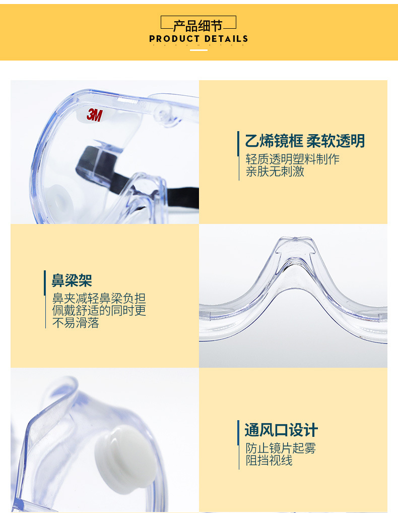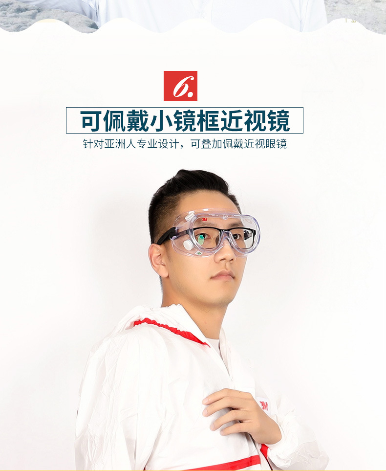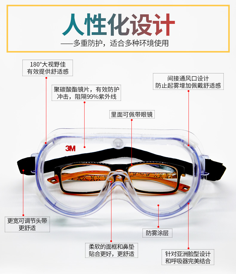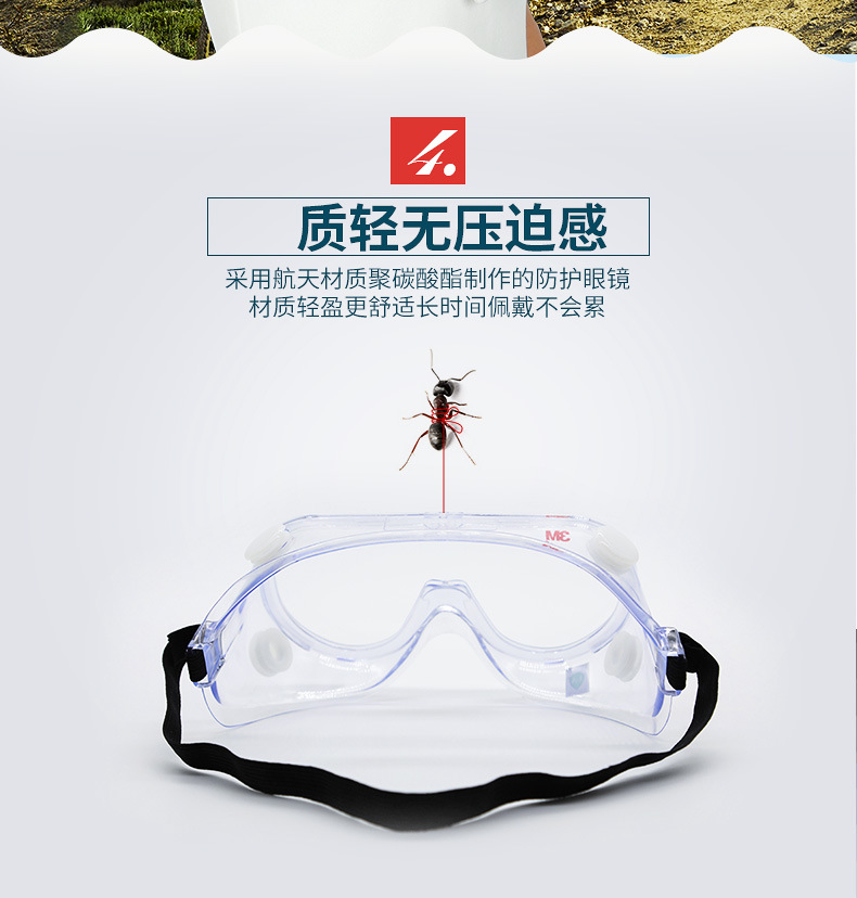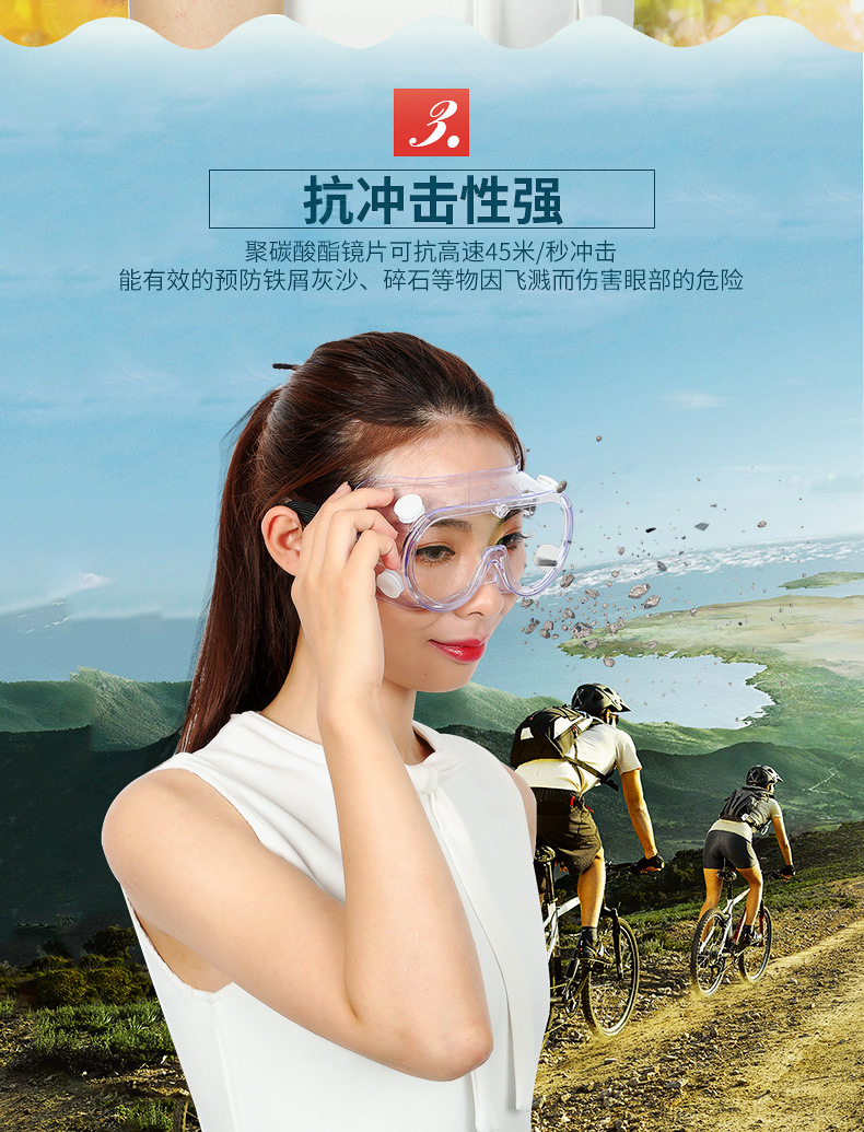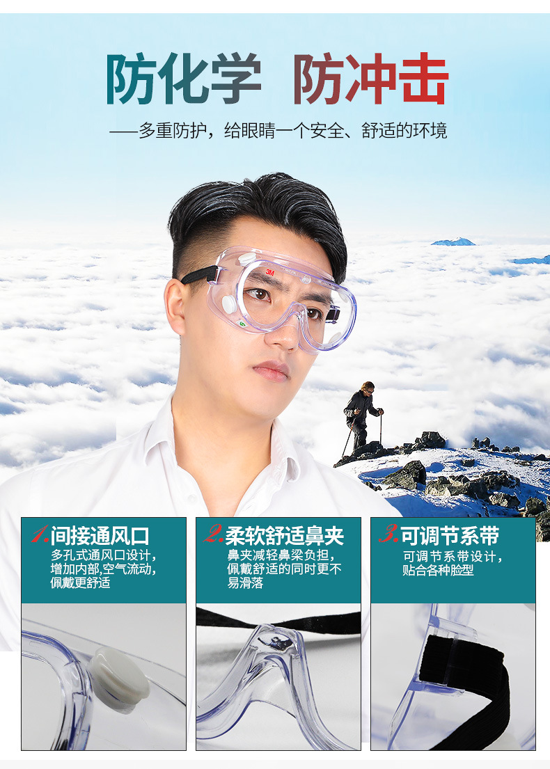 3M护目镜劳保防飞溅防冲击防尘防雾护目镜防风沙骑行透明男女眼镜
