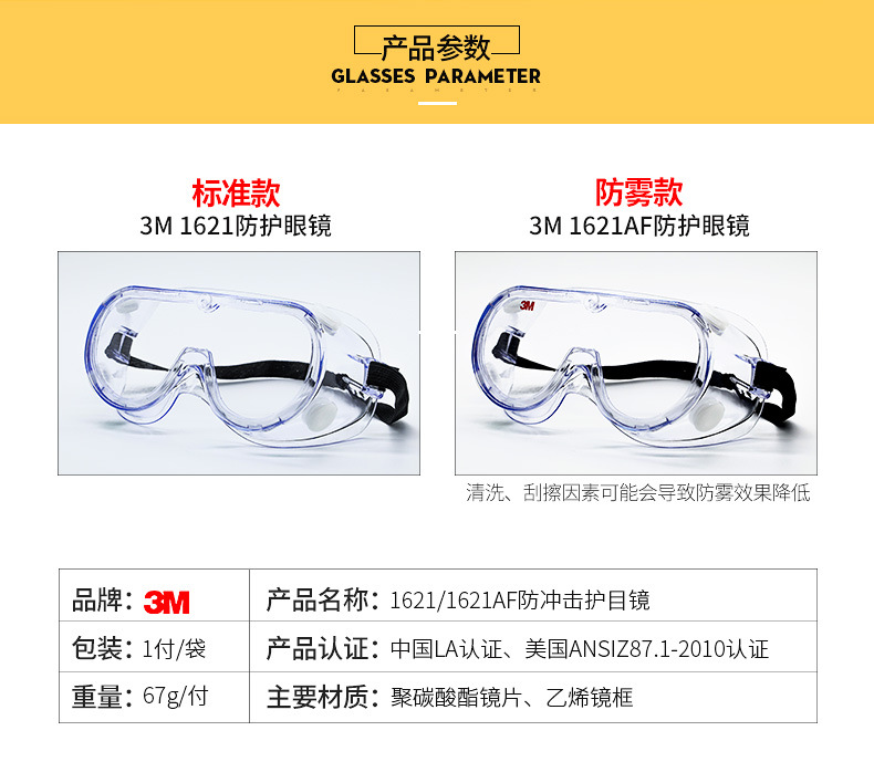 3M 1621AF 고글 노동 보호 방수 충격 방지 방진 안개 고글 모래 방지 라이딩 안경스토어 가기