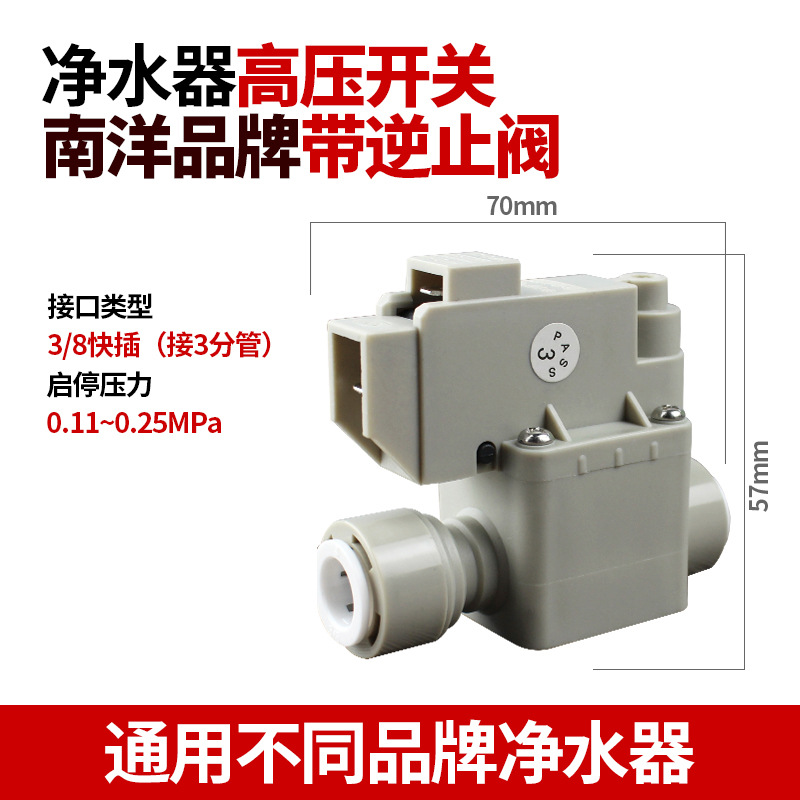 3分南阳高压开关 自带逆止阀(单向阀),3分快接口,NY南洋温州大阳高压开关净水器配件