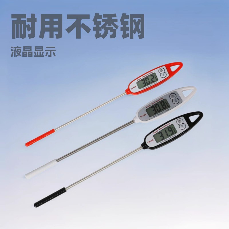 TP108探针食品温度计共三色可选,白色、黑色、红色。适用于烧烤测温、烘焙测温、食品测温。