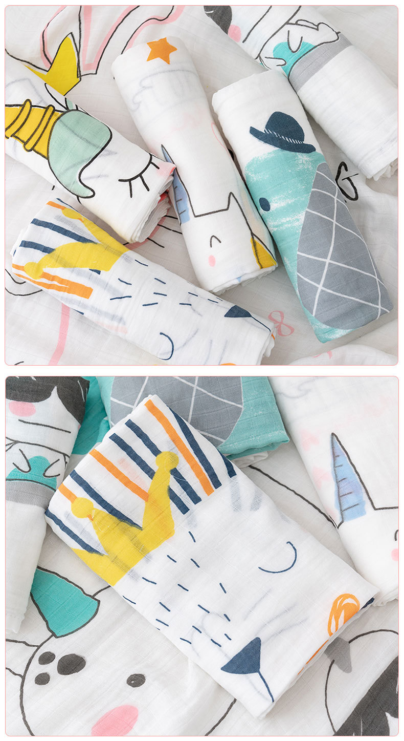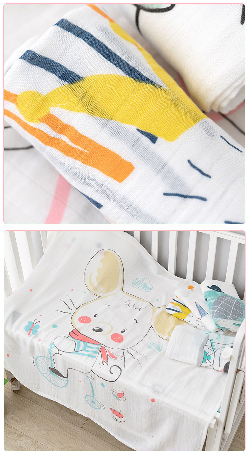 아기 목욕 타올 대나무 섬유 더블 거즈 신생아 패키지 유치원 인쇄 타월 커버 담요 어린이 이불
