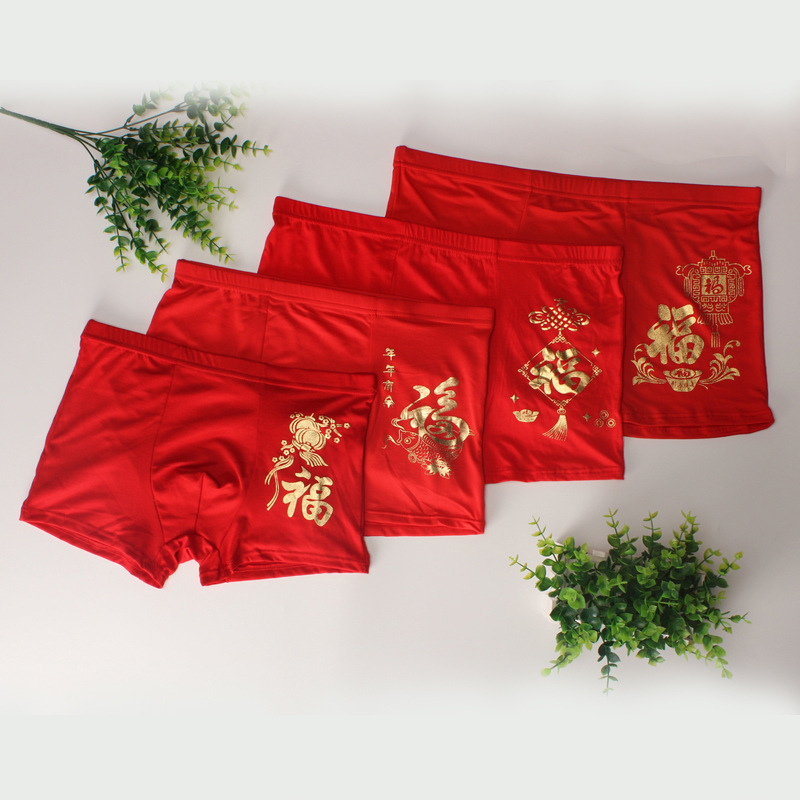남자 속옷 빨간 새해 중간 허리 우유 실크 새해 축제 복서 바지스토어 가기
