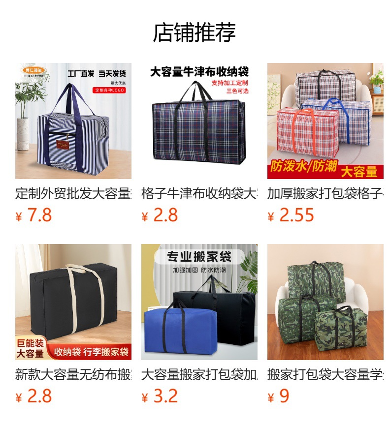 대용량 부직포 이사 포장 가방 두꺼운 컬러 코팅 의류 이불 보관 가방 휴대용 수하물 가방스토어 가기