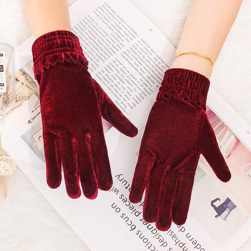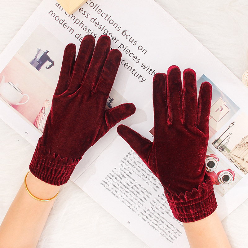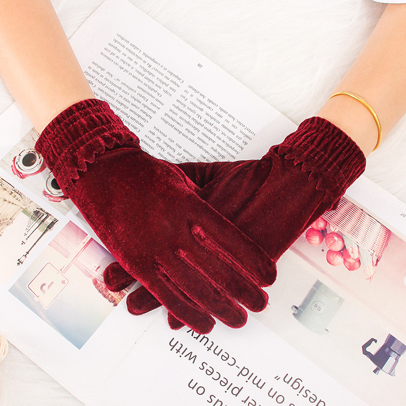 황금 벨벳 에티켓 장갑 숙녀 가을과 겨울 니트 따뜻한 성인 다섯 손가락 따뜻한 도매 보석 쇼핑 가이드 장갑스토어 가기