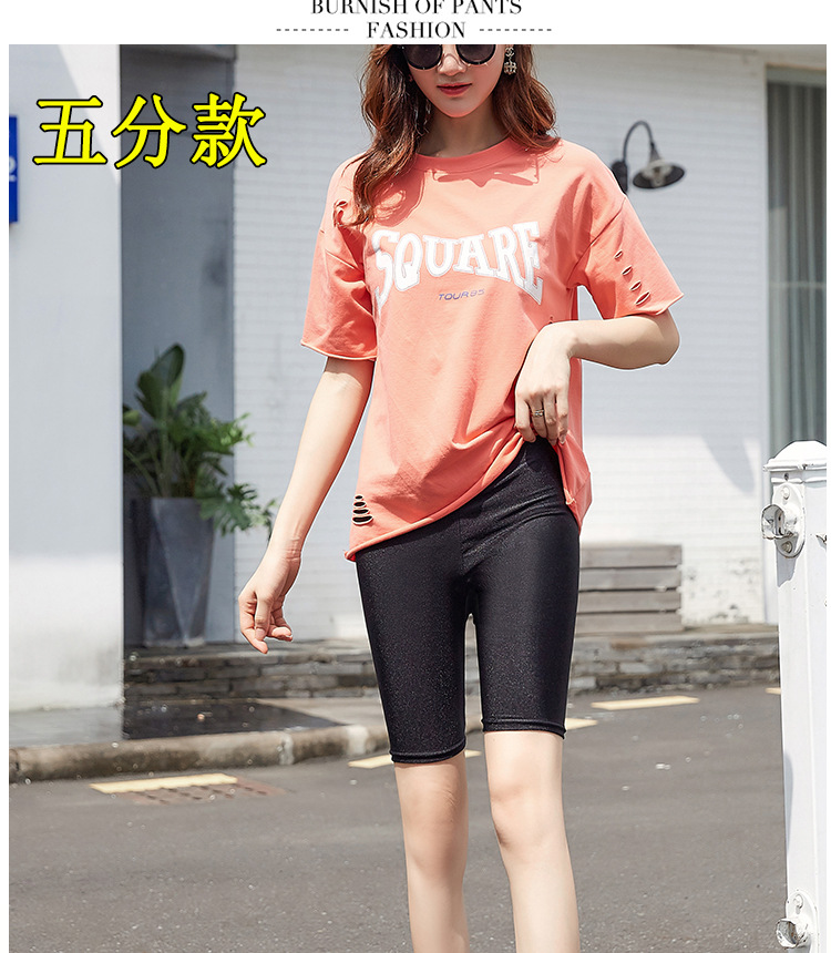 얇은 여름 광택 바지 여성의 플러스 사이즈 겉옷 자른 레깅스 스트레치 아이스 실크 자른 안전 바지 블랙스토어 가기